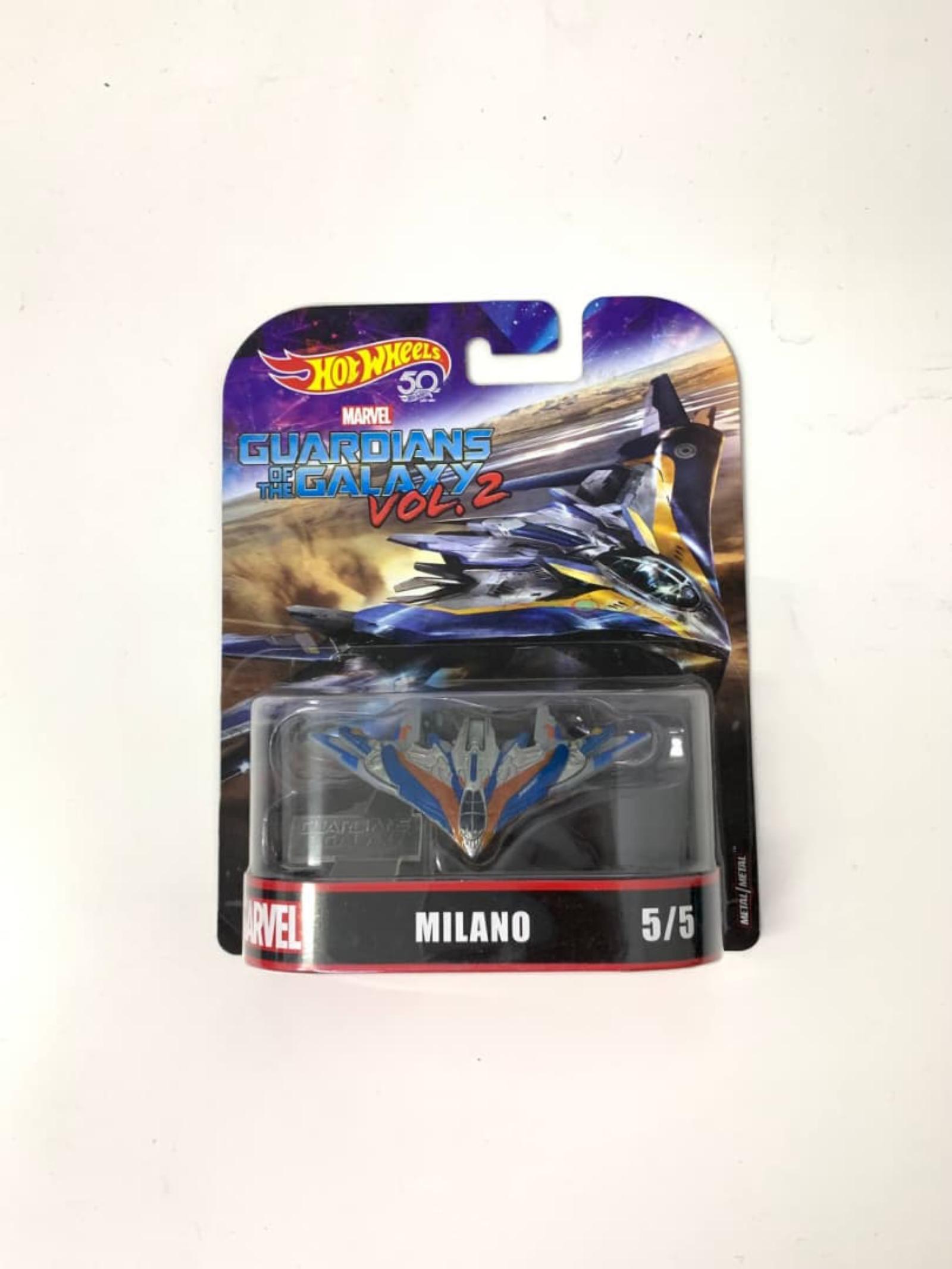 Hot Wheels collectible featuring the Milano ship from Marvel's Guardians of the Galaxy Vol. 2. Part of the 50th anniversary Hot Wheels series. The item is unopened in original packaging, making it a great addition for fans and collectors of Marvel and Hot Wheels memorabilia.