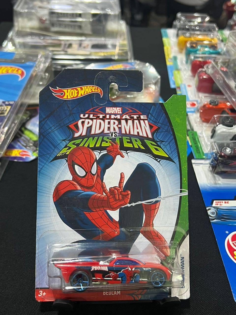 This Hot Wheels collectible features a Marvel Ultimate Spider-Man vs Sinister 6 themed die-cast car with detailed Spider-Man graphics. The car is sealed in its original packaging, showcasing vibrant artwork and branding. A must-have for Hot Wheels and Spider-Man fans, suitable for ages 3 and up.