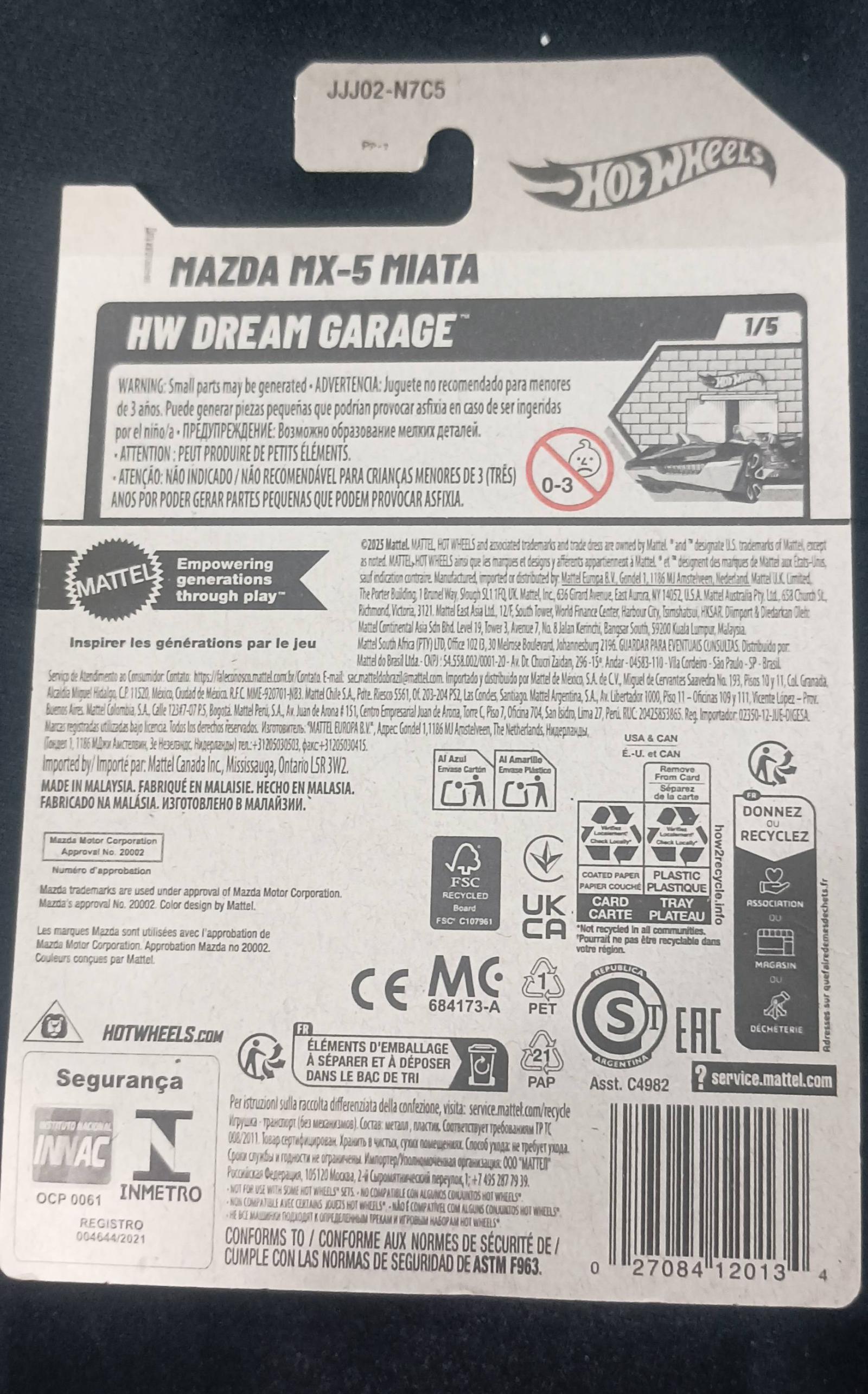 This Hot Wheels collectible features a detailed Mazda MX-5 Miata from the HW Dream Garage series. It is a limited edition model, numbered 1/250, and comes in its original packaging. Suitable for ages 3 and up, it makes a great addition to any Hot Wheels or automotive collection.