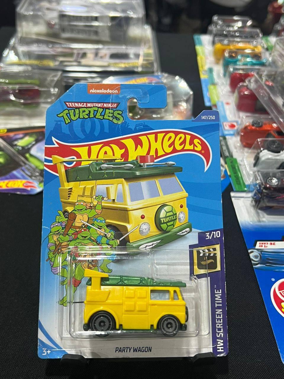 Hot Wheels Party Wagon from the Teenage Mutant Ninja Turtles HW Screen Time series, number 147/250. Features the iconic yellow and green Party Wagon with detailed TMNT design. Suitable for collectors and fans of the TMNT franchise. Recommended for ages 3 and up.