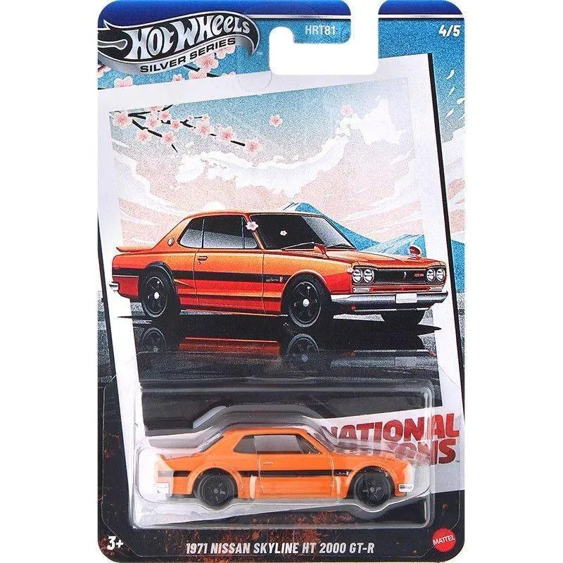 Notable features: This set is a cohesive themed release celebrating iconic cars from different countries, presented with illustrated pack art for each model. The Silver Series header and stylized background artwork are intact across the set, and each pack is clearly numbered 1/5–5/5 — that completeness is the key collector appeal here. The lineup includes highly sought-after silhouettes (GT‑40, Lightweight E‑Type, and Porsche 911 R) and the desirable classic JDM Skyline — models that consistently draw interest from Hot Wheels collectors and classic-car enthusiasts alike.