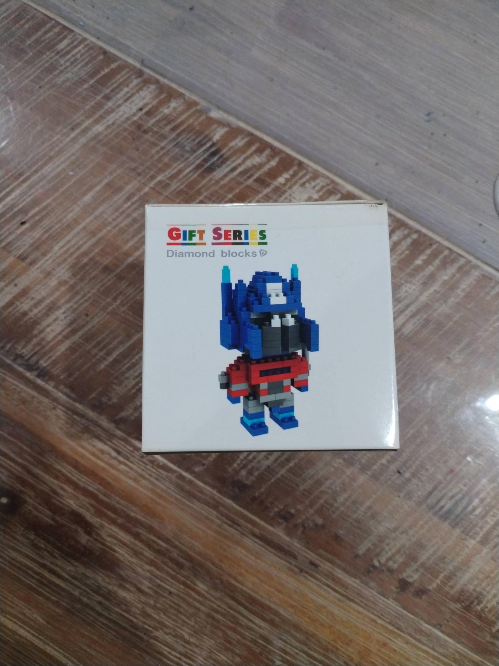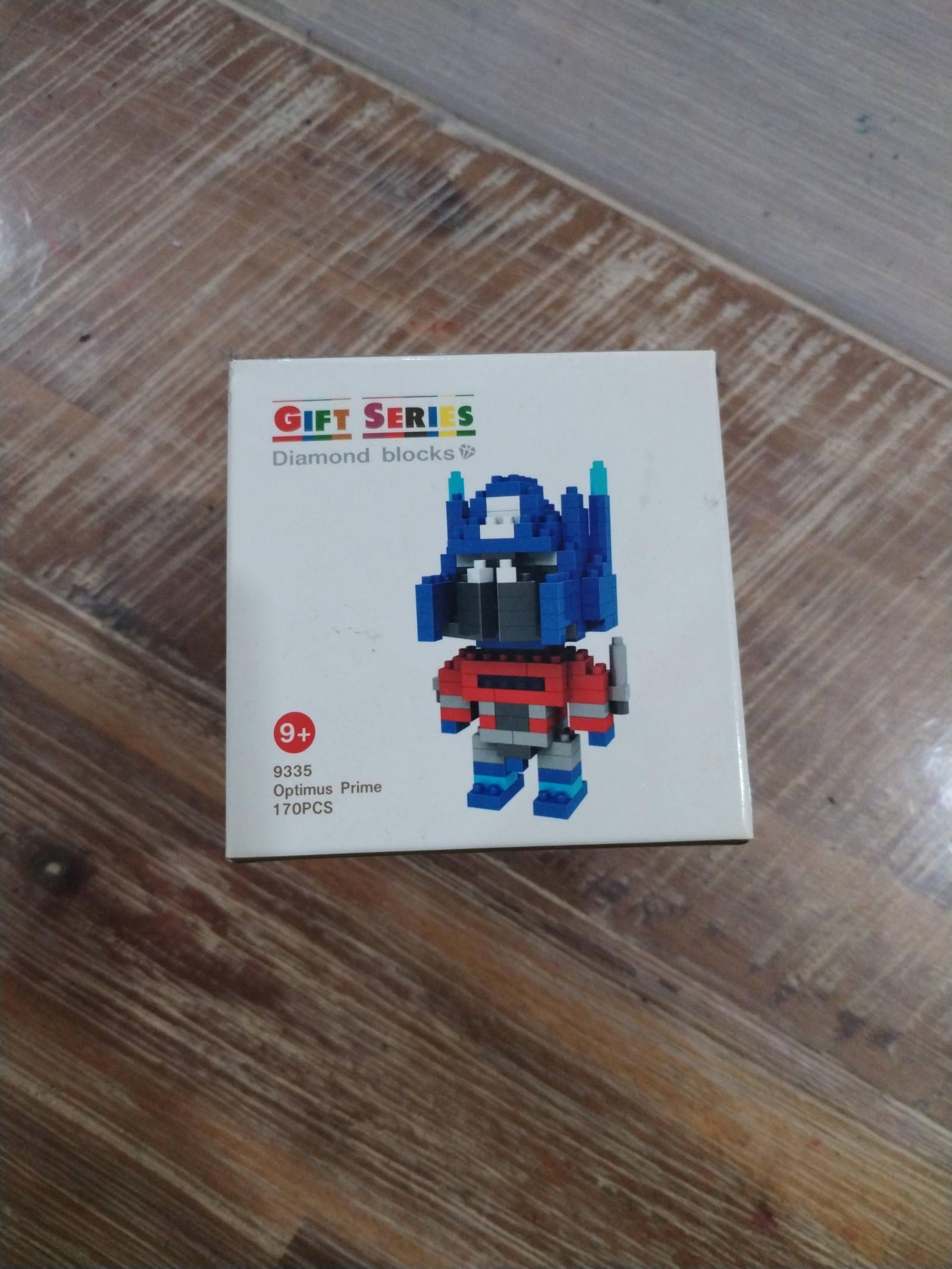 A collectible Optimus Prime figurine made from 170pcs diamond blocks. Part of the Gift Series, designed for ages 9 and up. The item includes assembly instructions and comes in its original box.