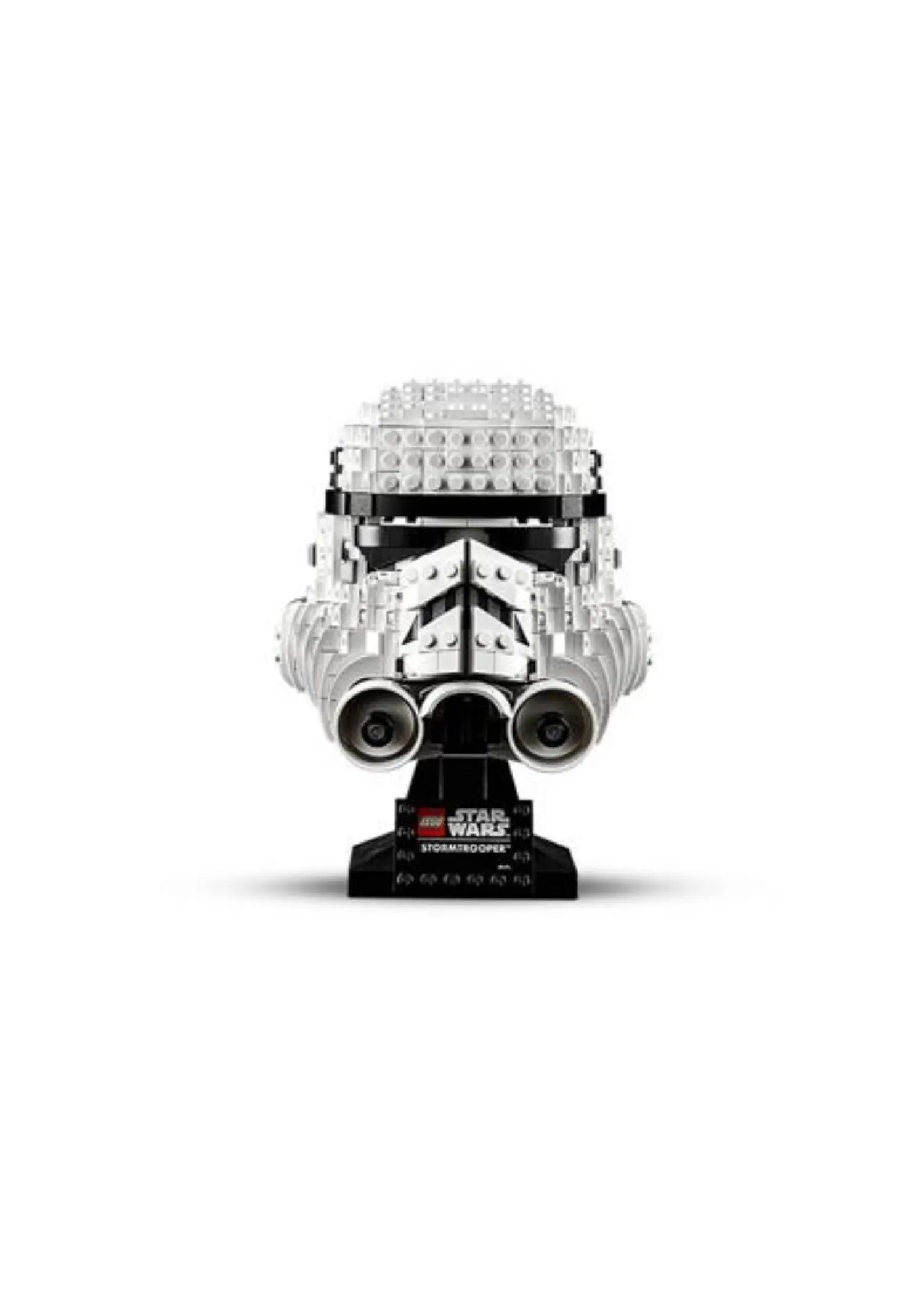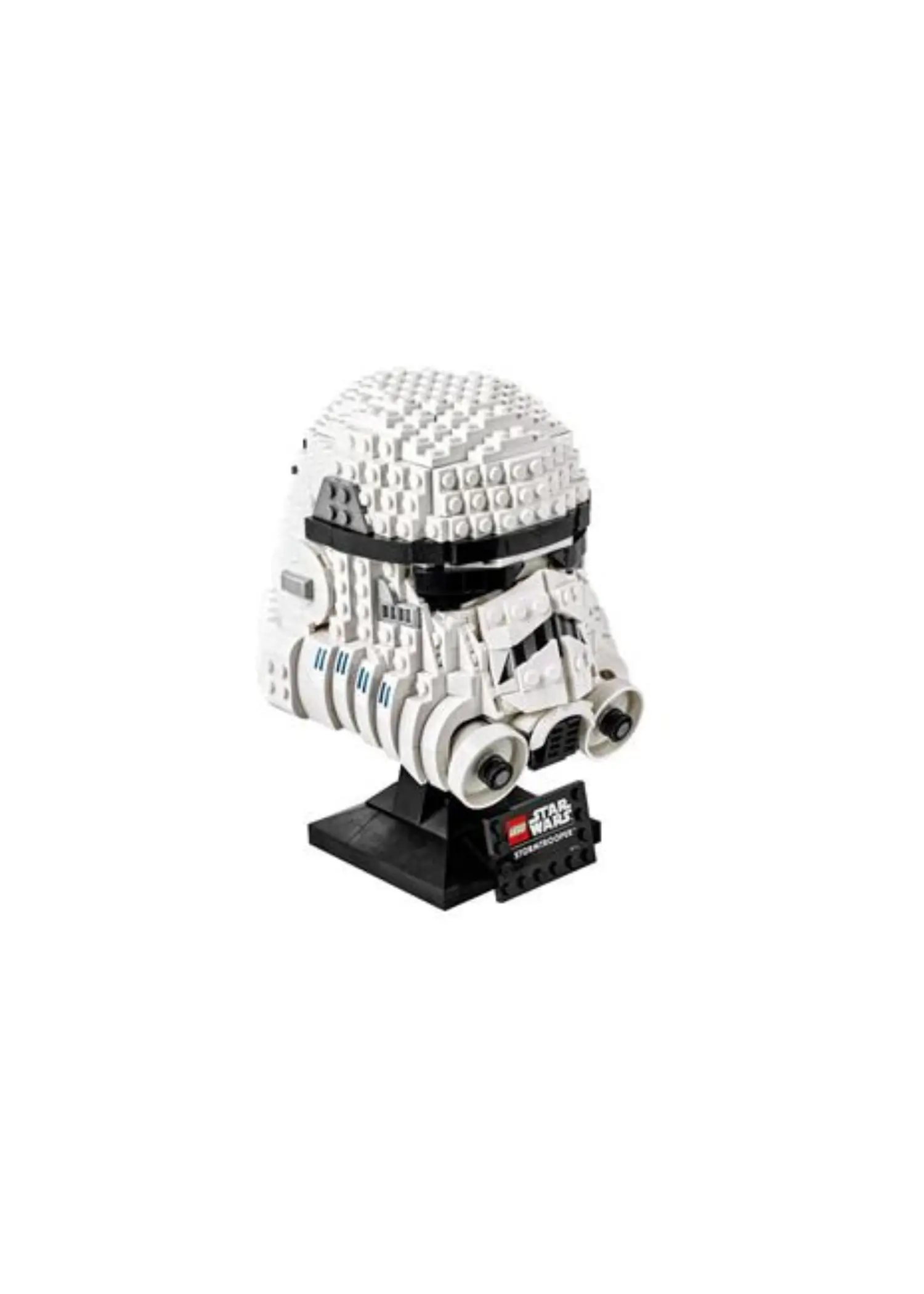 LEGO 75276 Stormtrooper is a Star Wars Helmet Collection set released in 2020, containing 647 pieces. The build recreates the distinctive Stormtrooper helmet and is mounted on a display base with a nameplate for shelf display.
