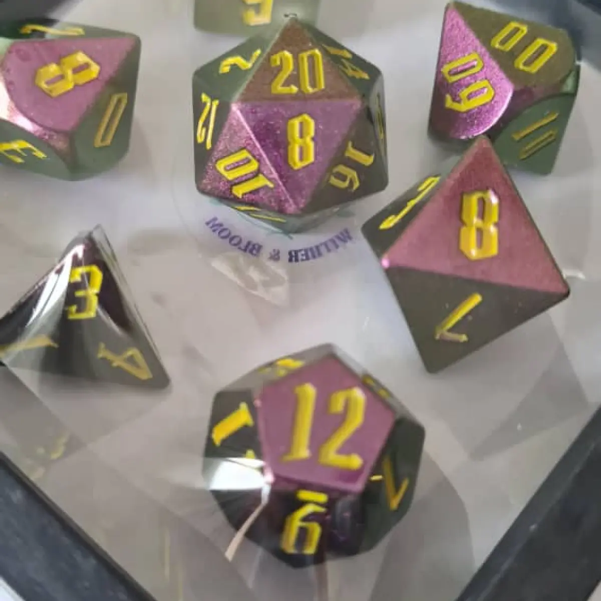This dice set is curated by Nightshade Tavern and comes with the transparent display case for your easy showcase.