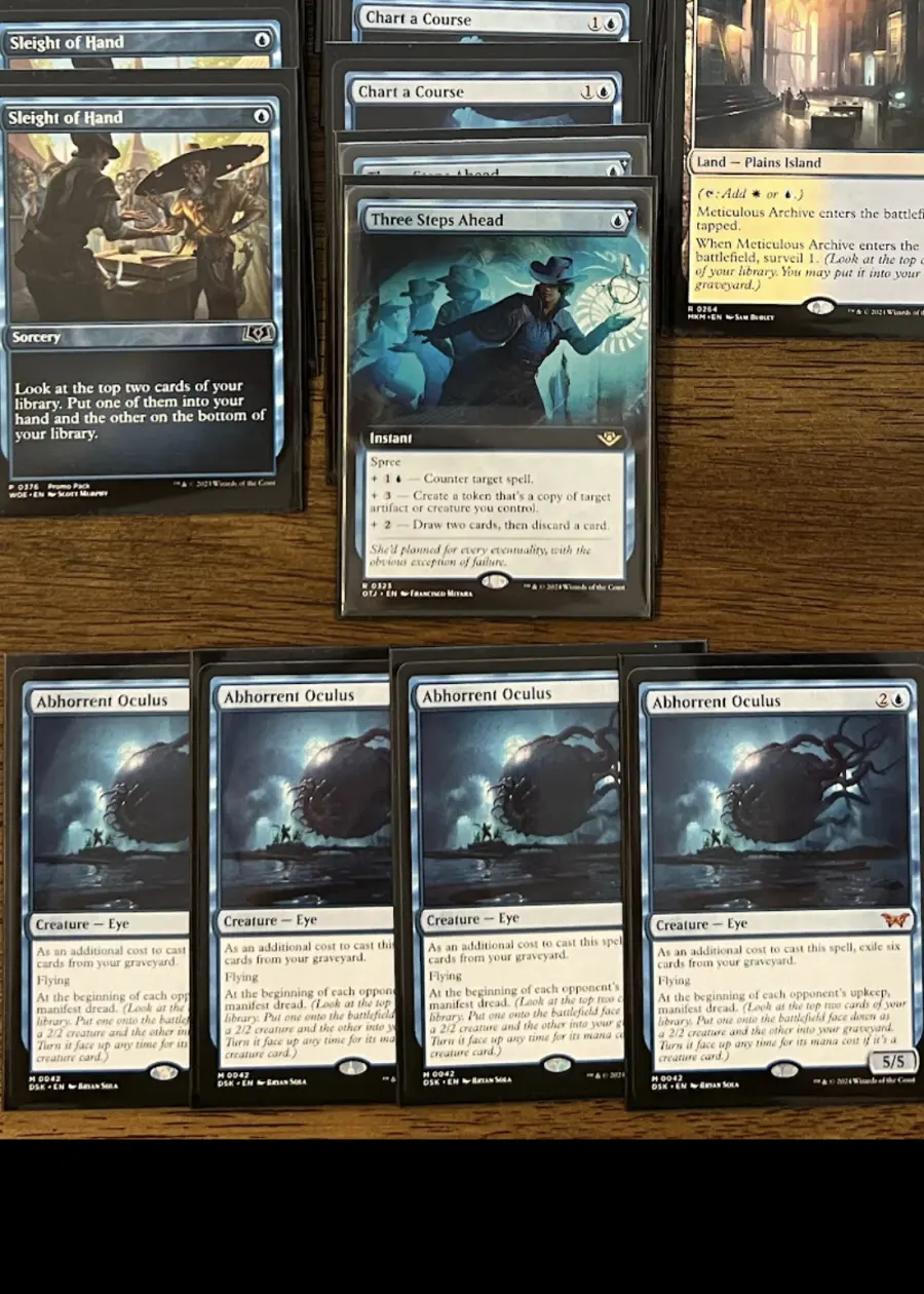 At the beginning of each opponent's upkeep, manifest dread. (Look at the top two cards of your library. Put one onto the battlefield face down as a 2/2 creature and the other into your graveyard. Turn it face up any time for its mana cost if it's a creature card.) - P / T