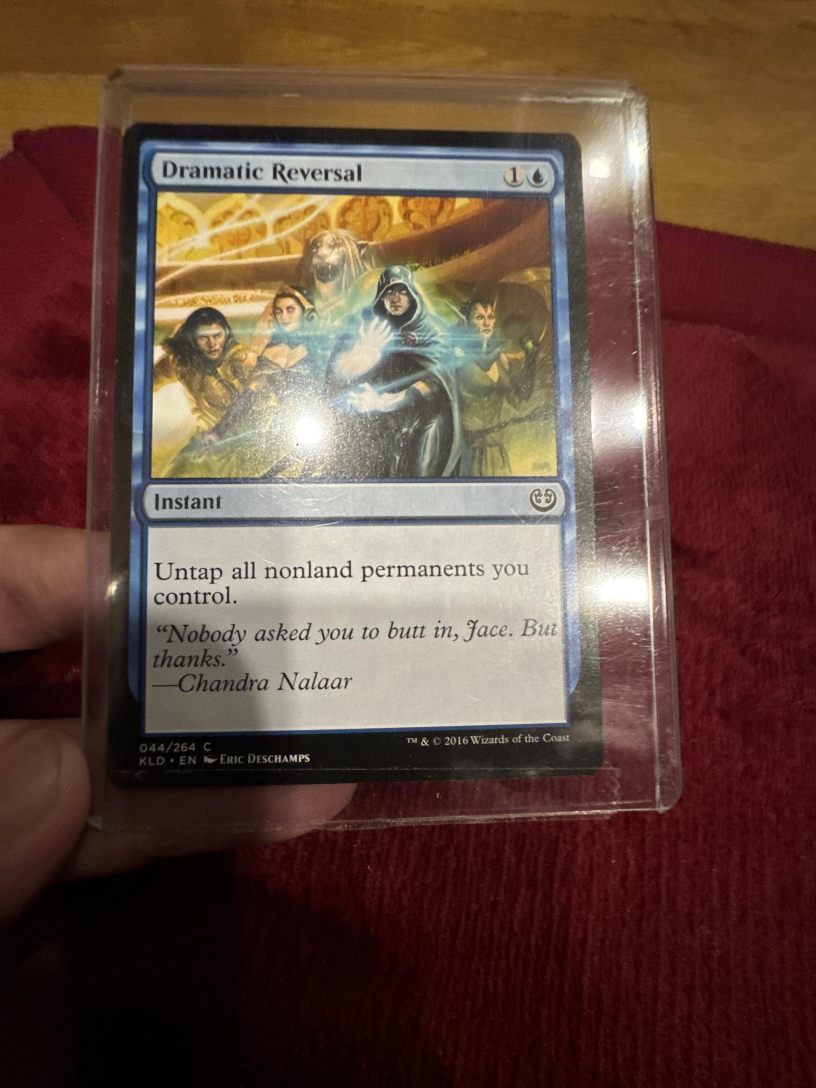 Dramatic Reversal from the Kaladesh (KLD) set, card number 44 of 264. Illustrated by Eric Deschamps. This is a non-foil collectible Magic: The Gathering card in English. The card is an instant that untaps all nonland permanents you control. It is playable in various competitive formats and valuable for combo decks.