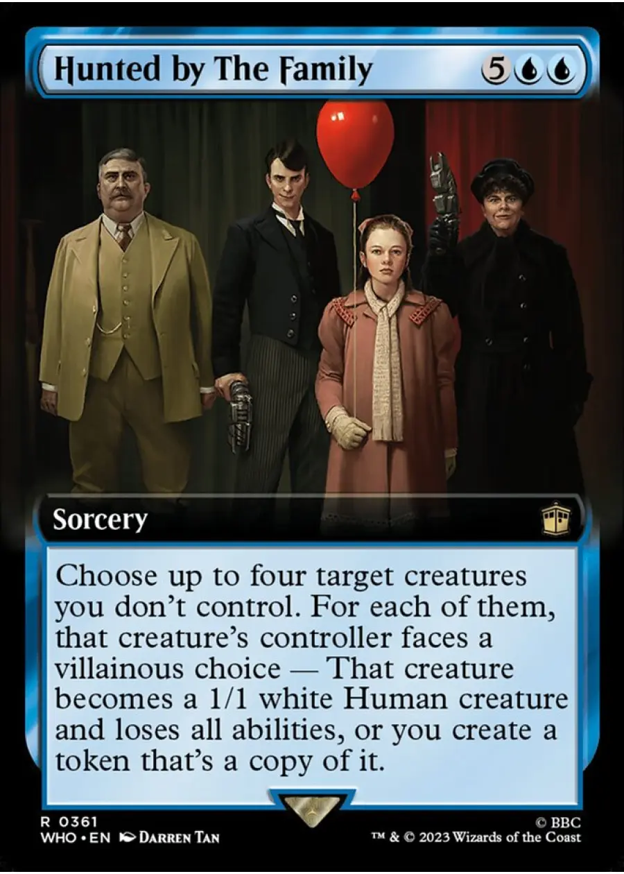 - Choose up to four target creatures you don't control. For each of them, that creature's controller faces a villainous choice — That creature becomes a 1/1 white Human creature and loses all abilities, or you create a token that's a copy of it.