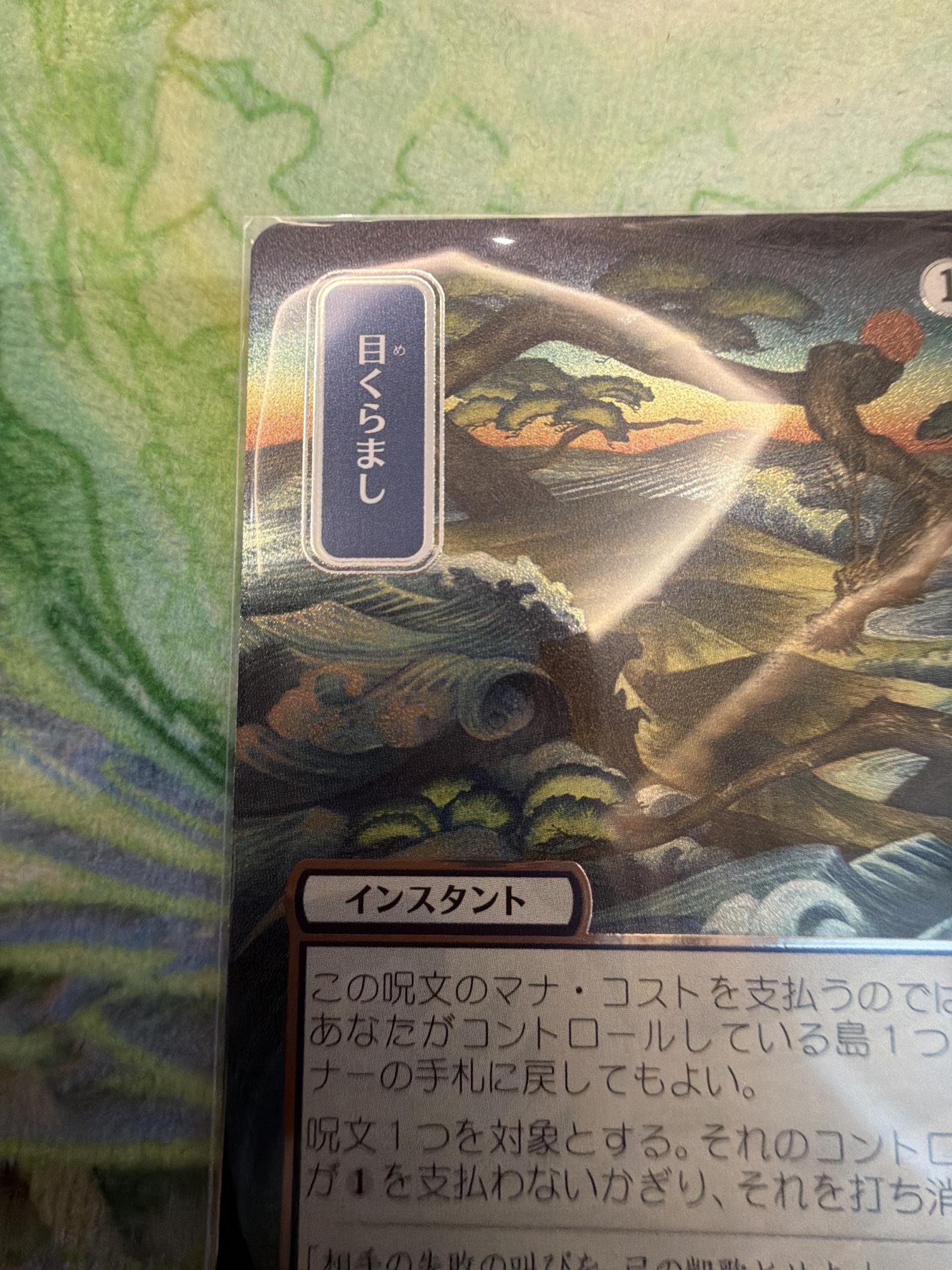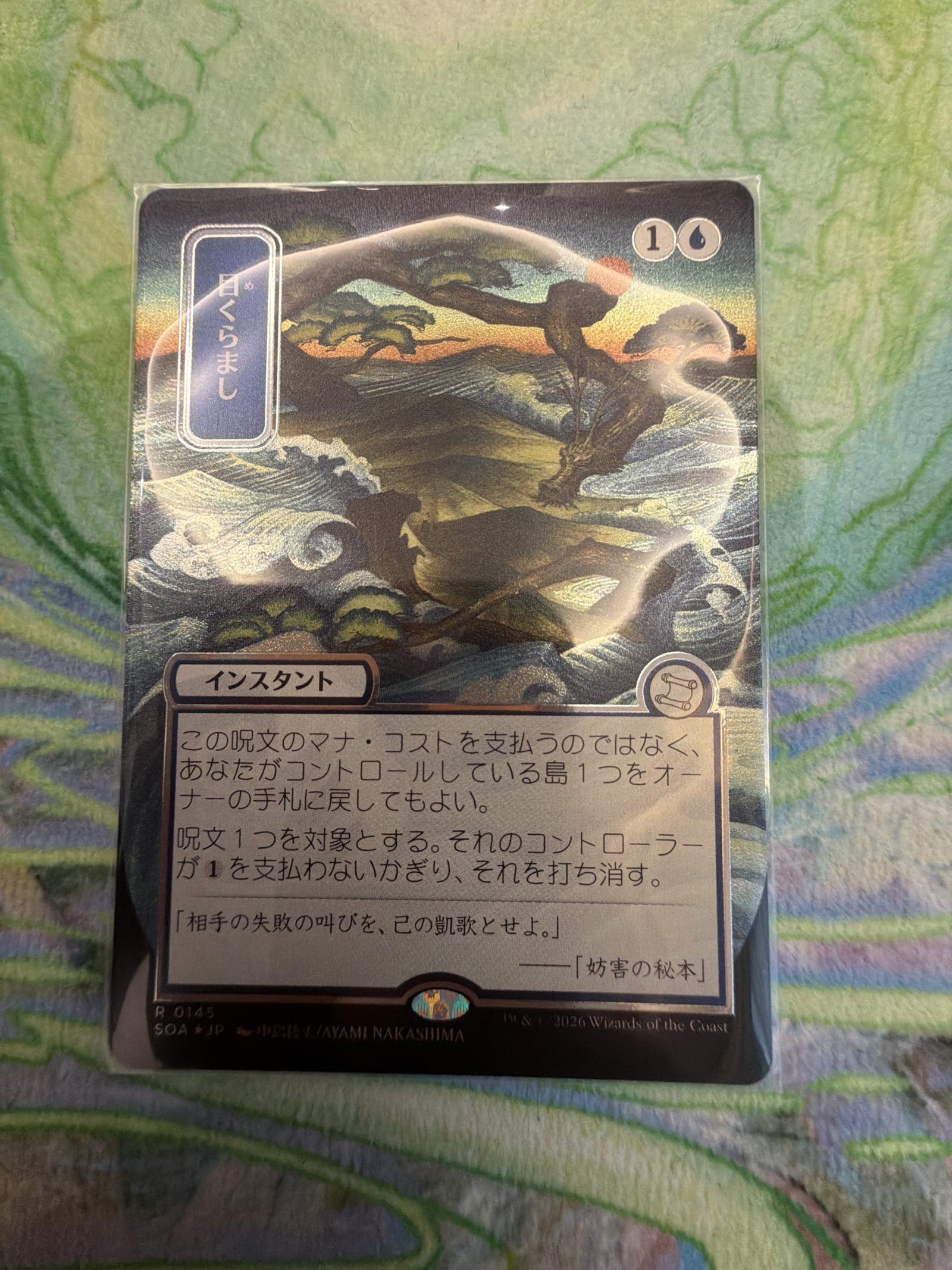 This is the Japanese silver scroll foil version of the Magic: The Gathering instant card ‘DAZE' from the set Strixhaven (SOA). The card features artwork by Ayami Nakashima and is known for its powerful effect in certain blue control decks by allowing mana cost reduction through island return. A collectible and playable card in many meta decks. The card number is 145 and it has a scroll foil printing treatment.