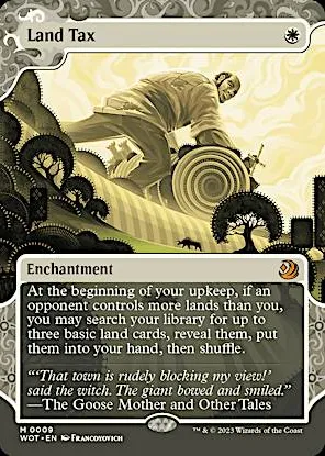- At the beginning of your upkeep, if an opponent controls more lands than you, you may search your library for up to three basic land cards, reveal them, put them into your hand, then shuffle.