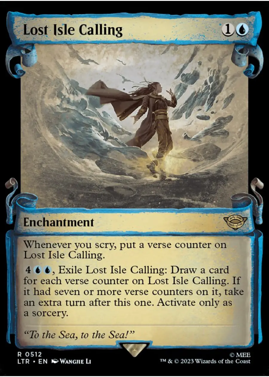 , Exile this enchantment: Draw a card for each verse counter on this enchantment. If it had seven or more verse counters on it, take an extra turn after this one. Activate only as a sorcery.