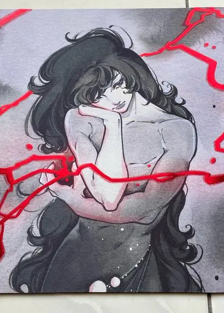 This MagicCon: Chicago 2025 playmat features exclusive artwork by renowned Japanese artist Peach Momoko, reimagining the iconic "Lightning Bolt" card from Magic: The Gathering. The design blends Momoko's elegant and distinctive art style with the classic Magic lore, making it a unique addition for collectors and players alike.