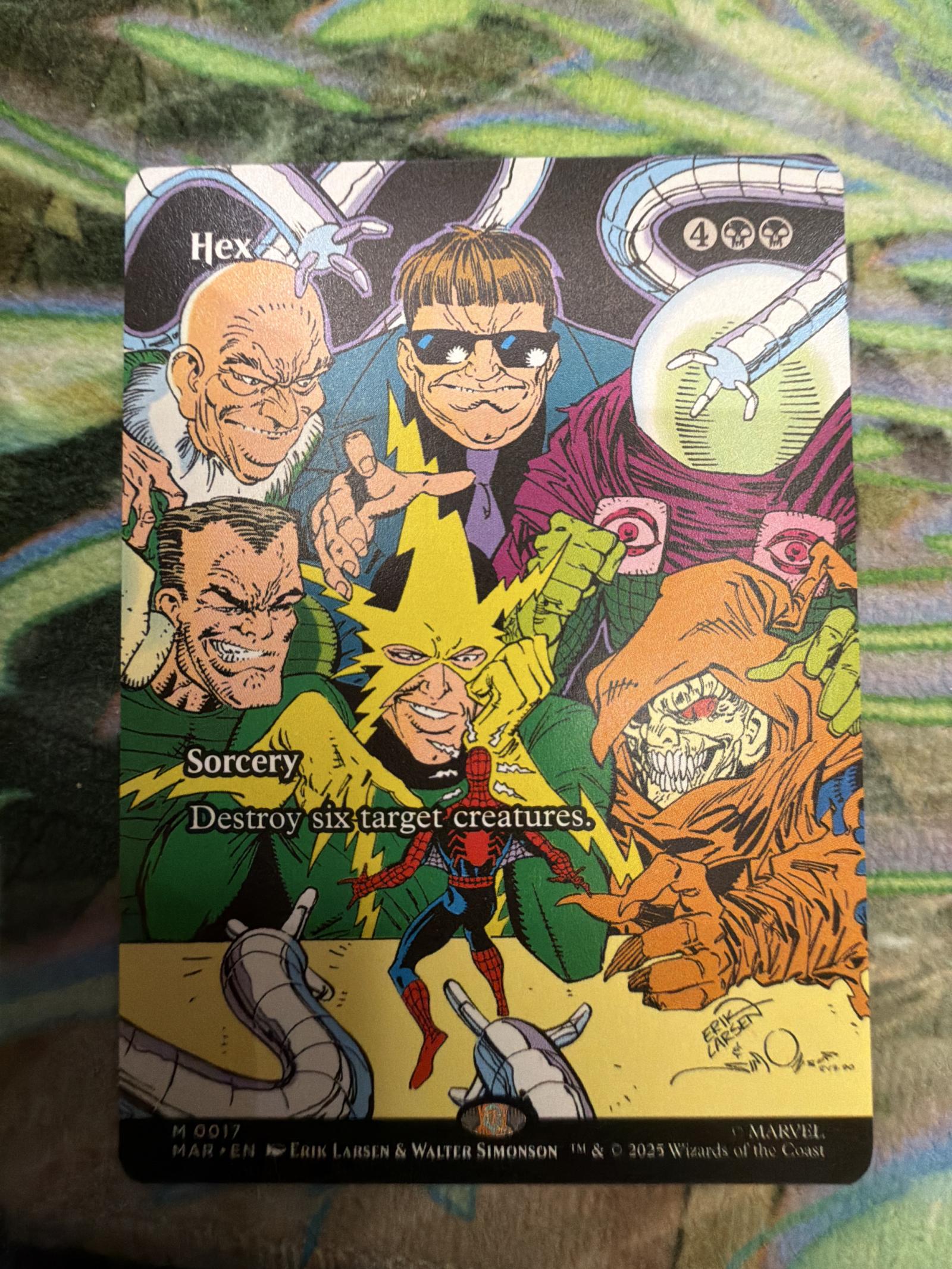 This Magic The Gathering card features artwork by Erik Larsen & Walter Simonson from the Marvel set. It depicts the Sinister Six villains and is a sorcery card with the effect to destroy six target creatures. The card is from the 2025 Marvel collaboration and is non-foil. It is mainly collectible and themed rather than a current meta playable card.