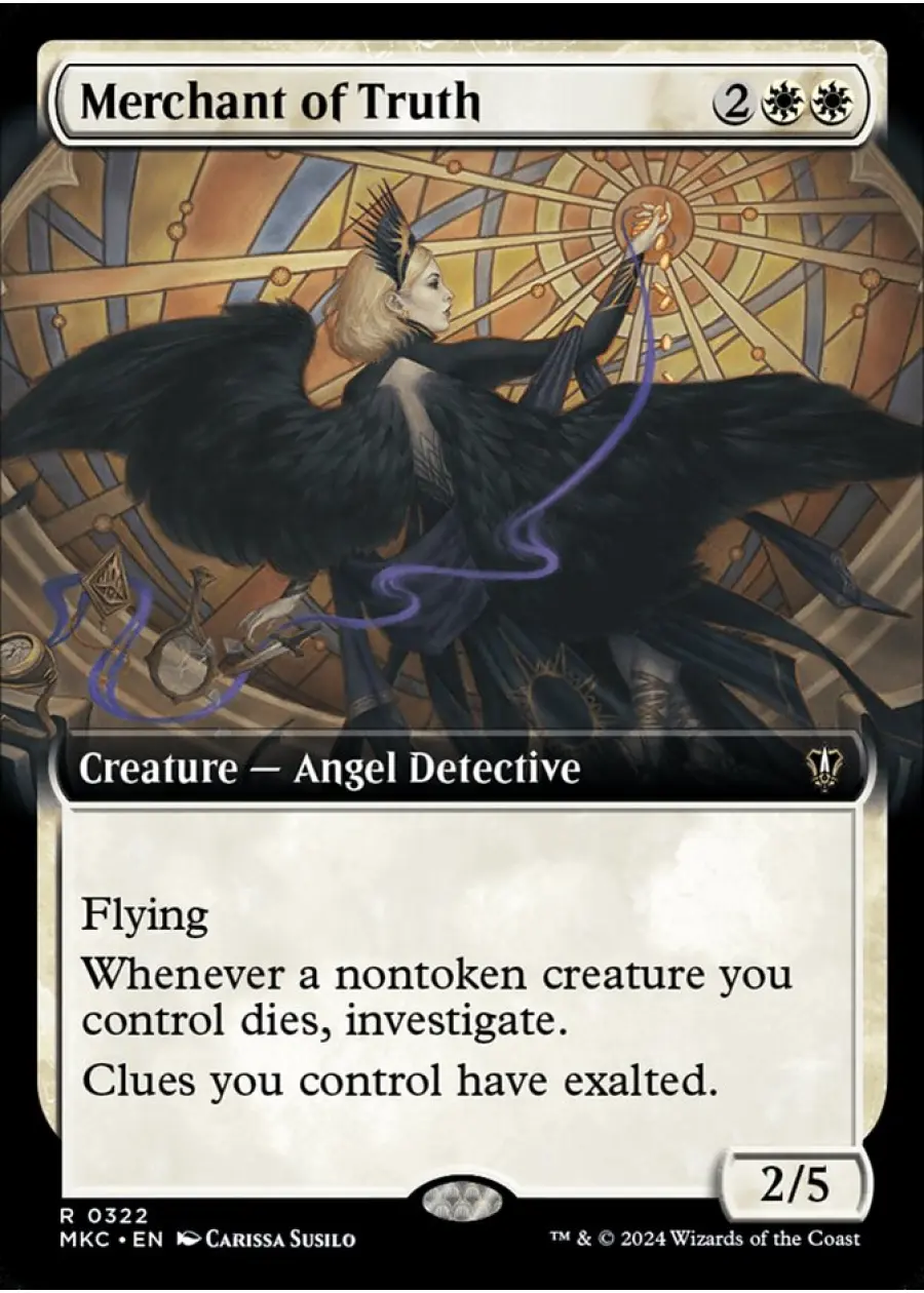 Clues you control have exalted. (Whenever a creature you control attacks alone, that creature gets +1/+1 until end of turn for each instance of exalted among permanents you control.) - P / T
