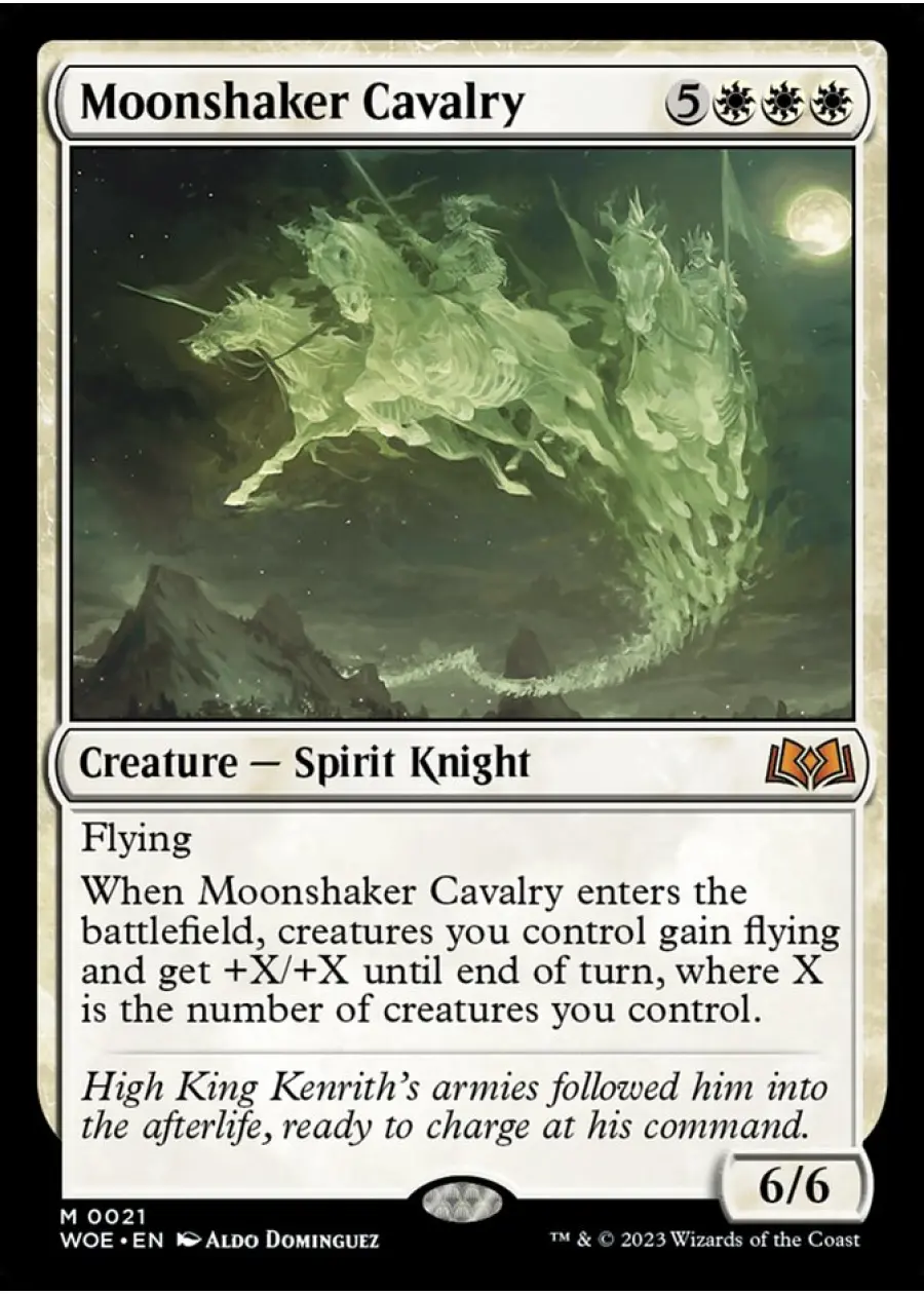 When this creature enters, creatures you control gain flying and get +X/+X until end of turn, where X is the number of creatures you control. - Flavor Text