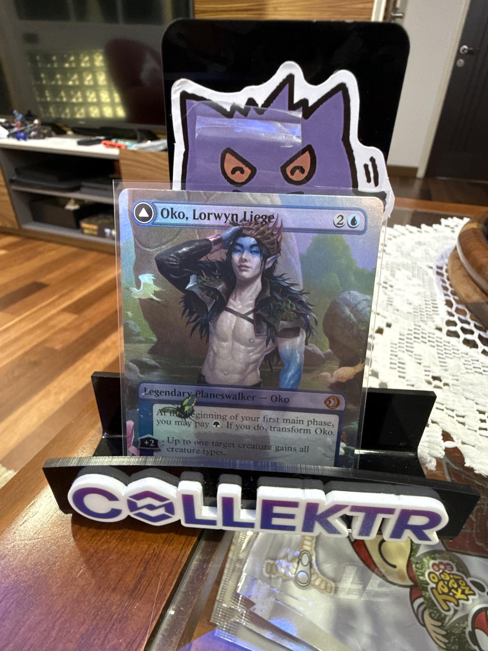 Oko, Lorwyn Liege is a legendary planeswalker card from the Magic: The Gathering set Lorwyn. This card features foil printing with artwork by an unknown artist. It is highly collectible and has seen play in various formats due to its powerful abilities. The card transforms into Oko, Shadowmoor Scion on the other side. The set is Lorwyn and this is a foil card, making it desirable for both collectors and players.