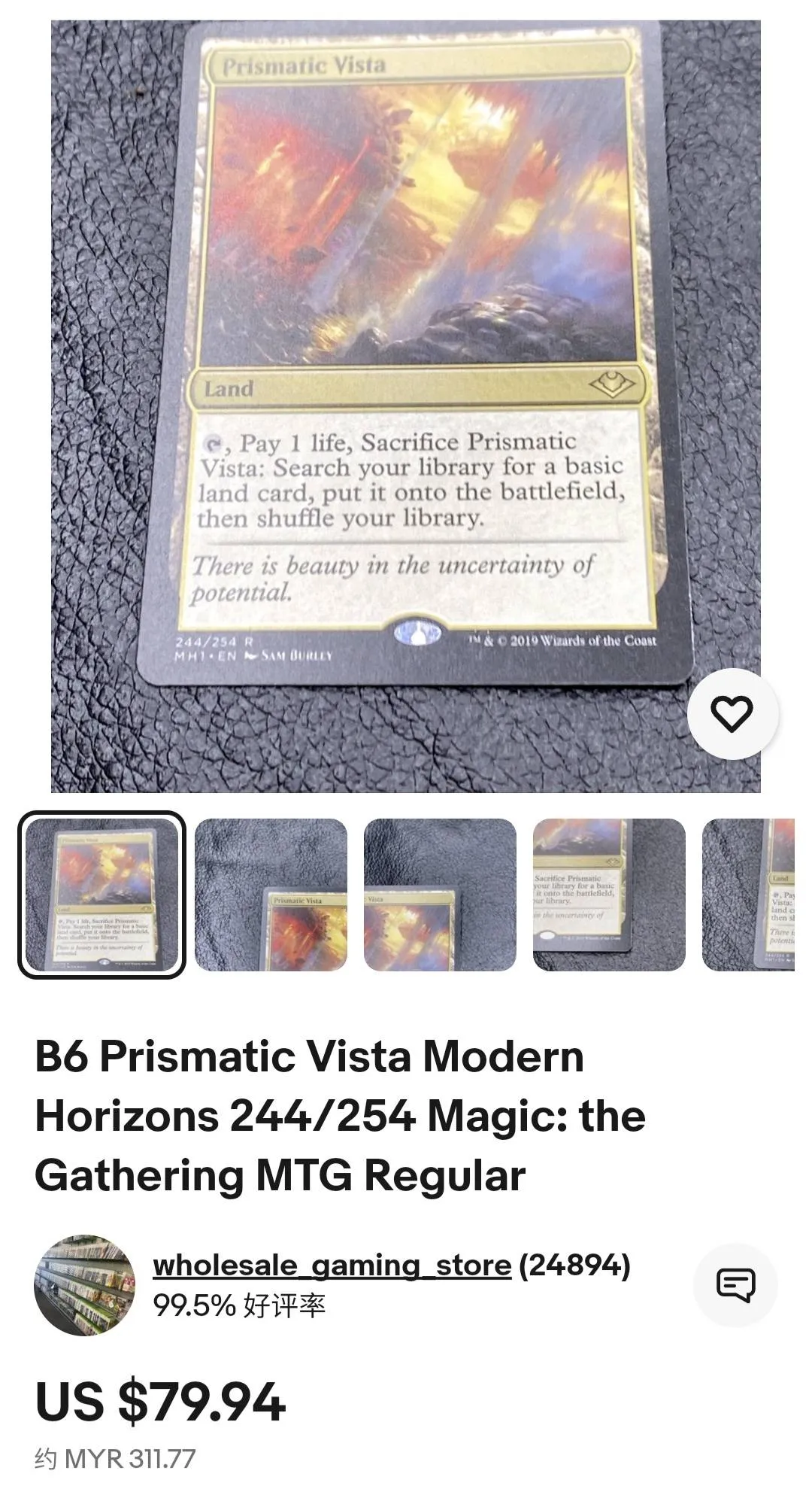 Prismatic Vista from the set Modern Horizons (MH1), illustrated by Sam Burley. This is a rare land card that is playable in many Magic: The Gathering formats. The card is not foil and is in English. Excellent for both collectors and players looking to enhance their decks.