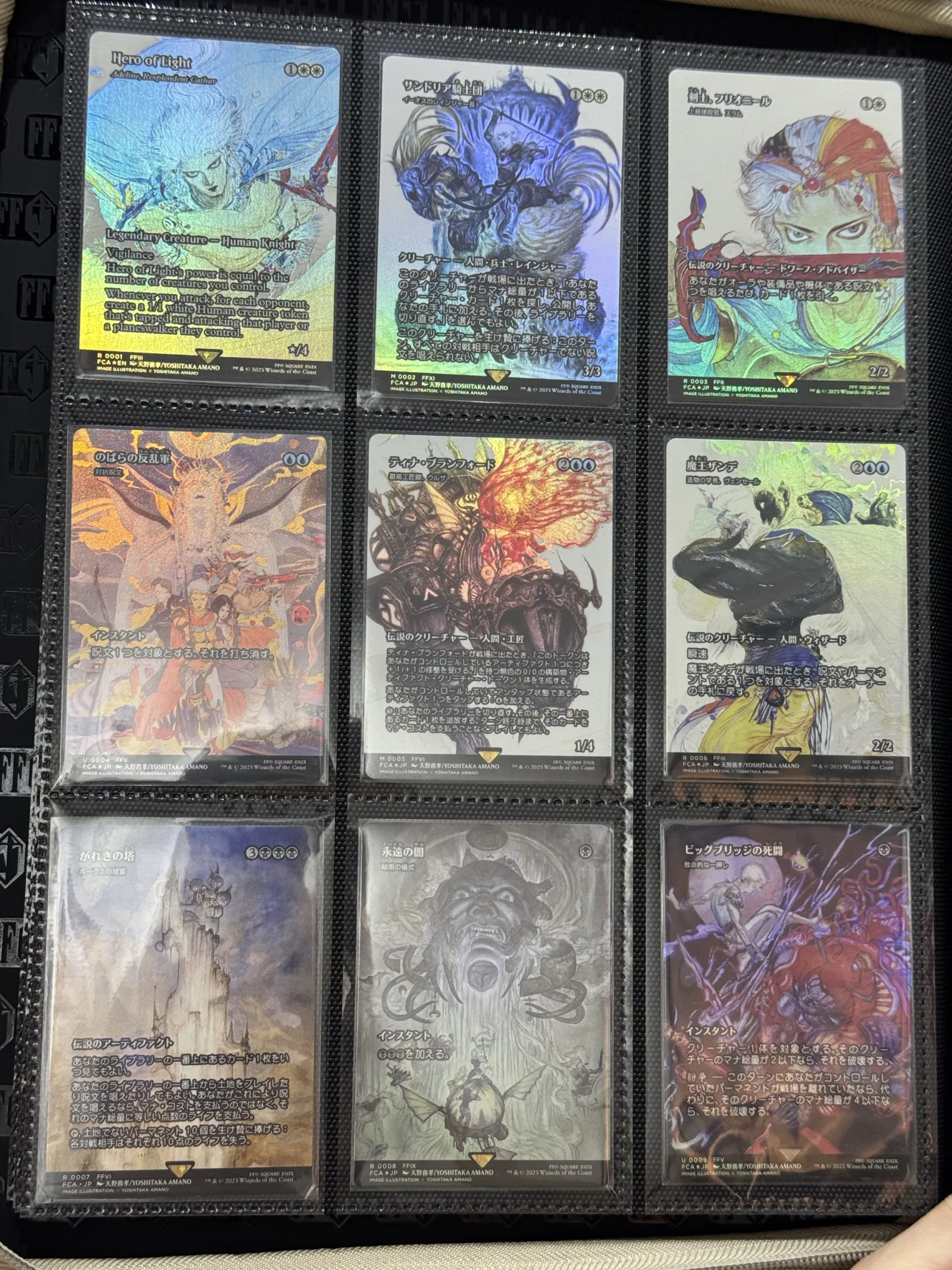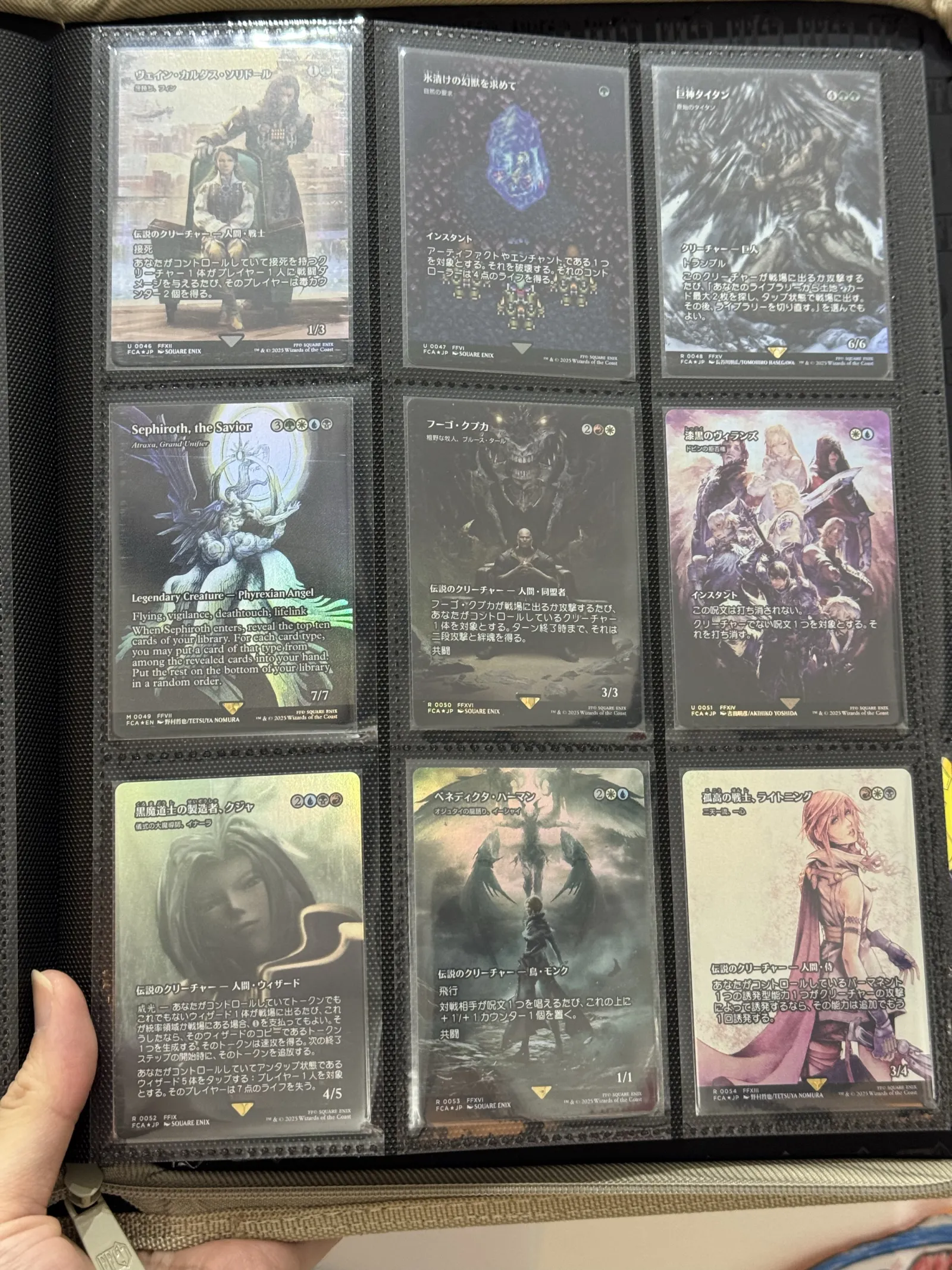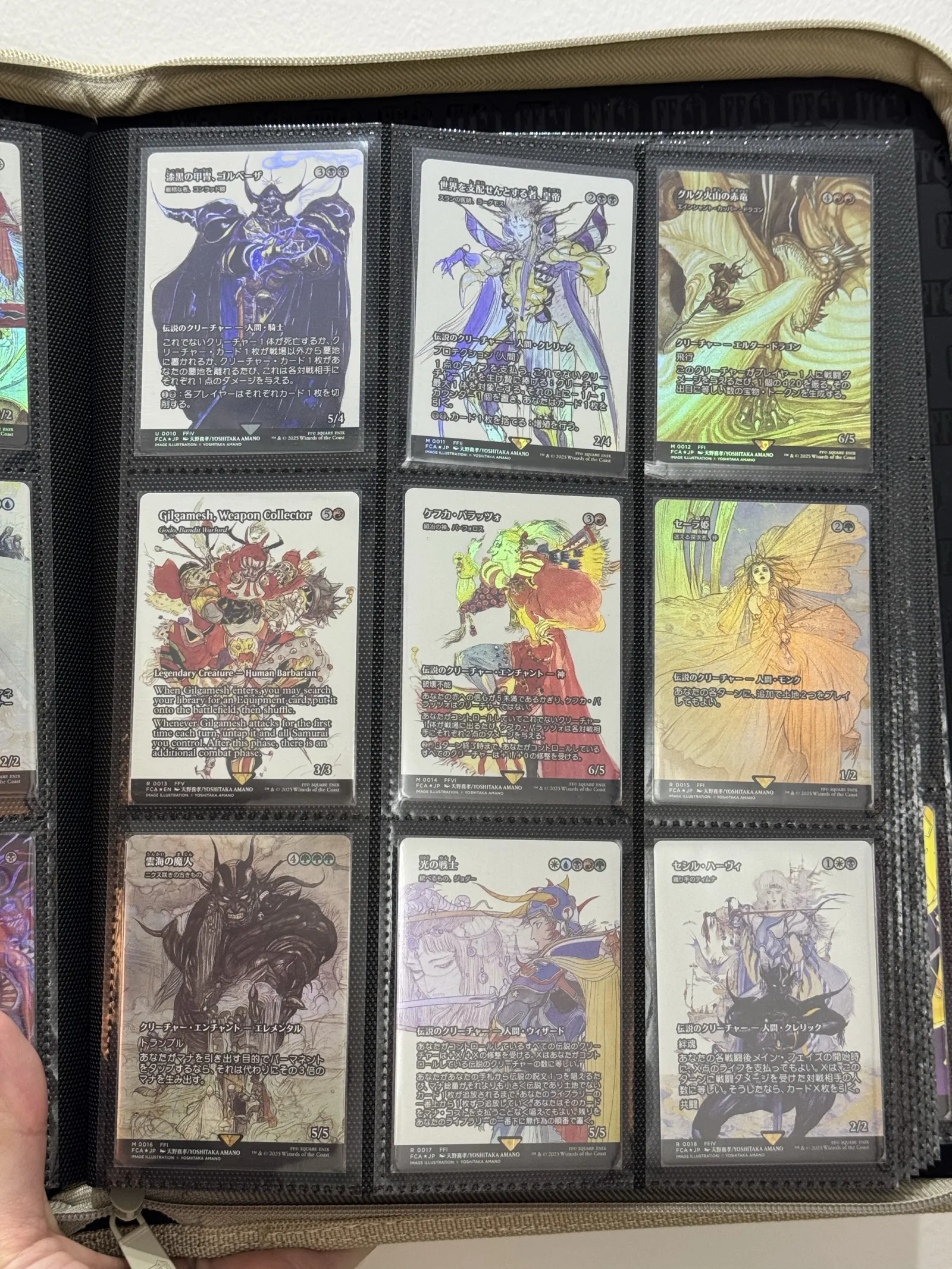 A full collection of MTG Final Fantasy 64 types Foil in Japanese (with only 2 in English:Gilgamesh & Sephiroth). Cards appear well-preserved with no visible damage, maintaining excellent overall presentation.