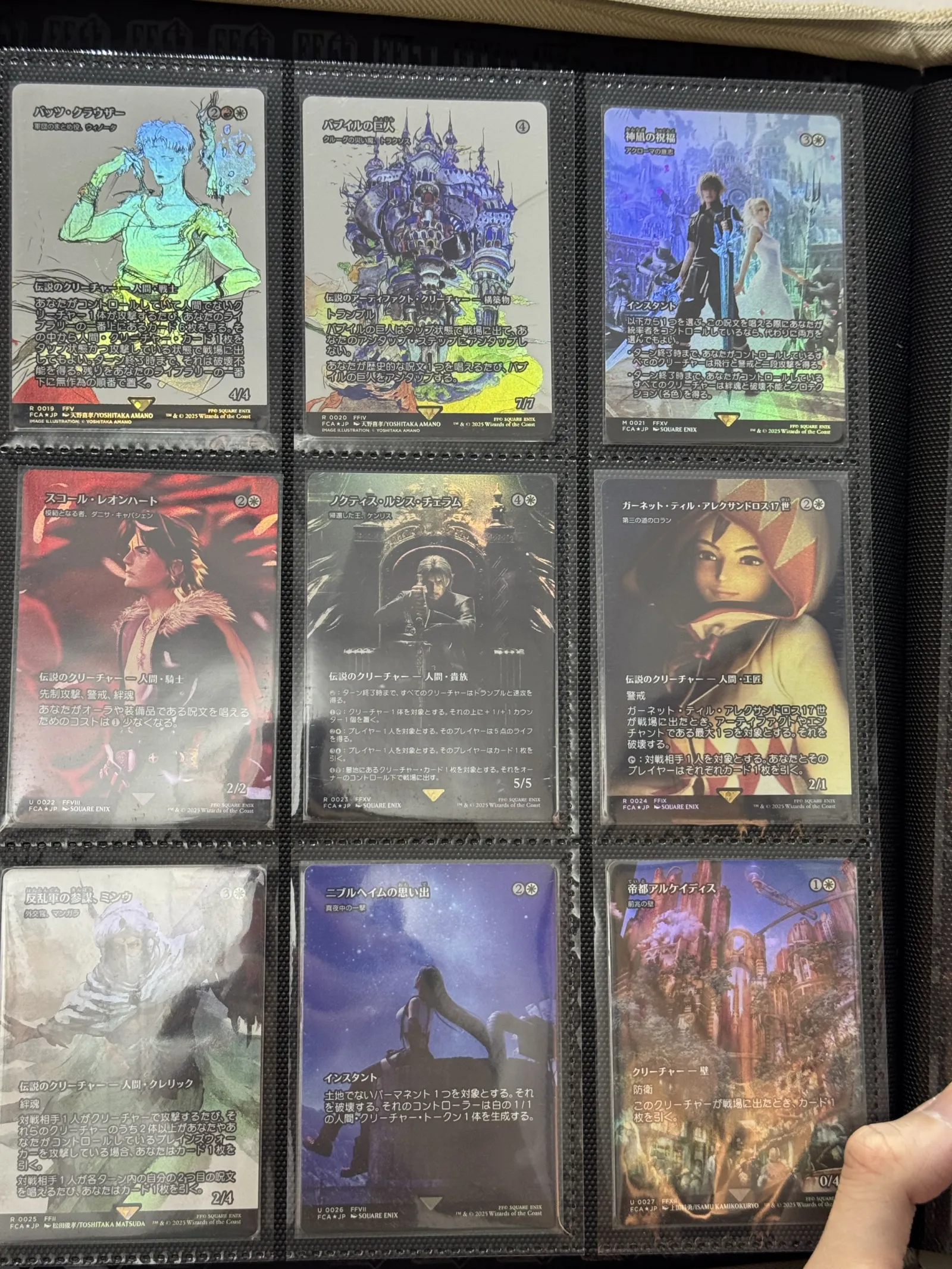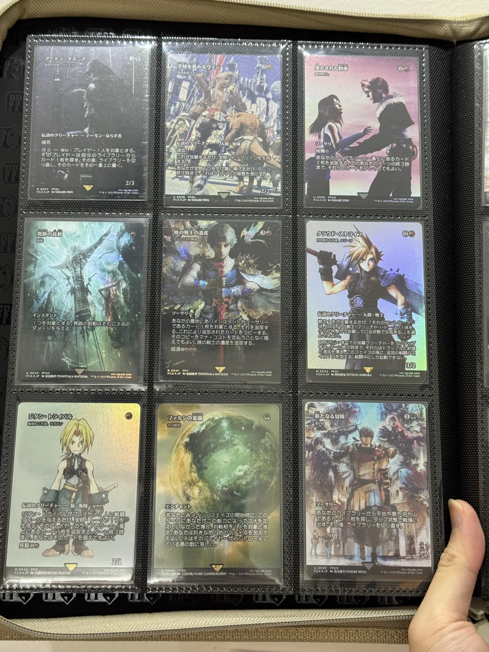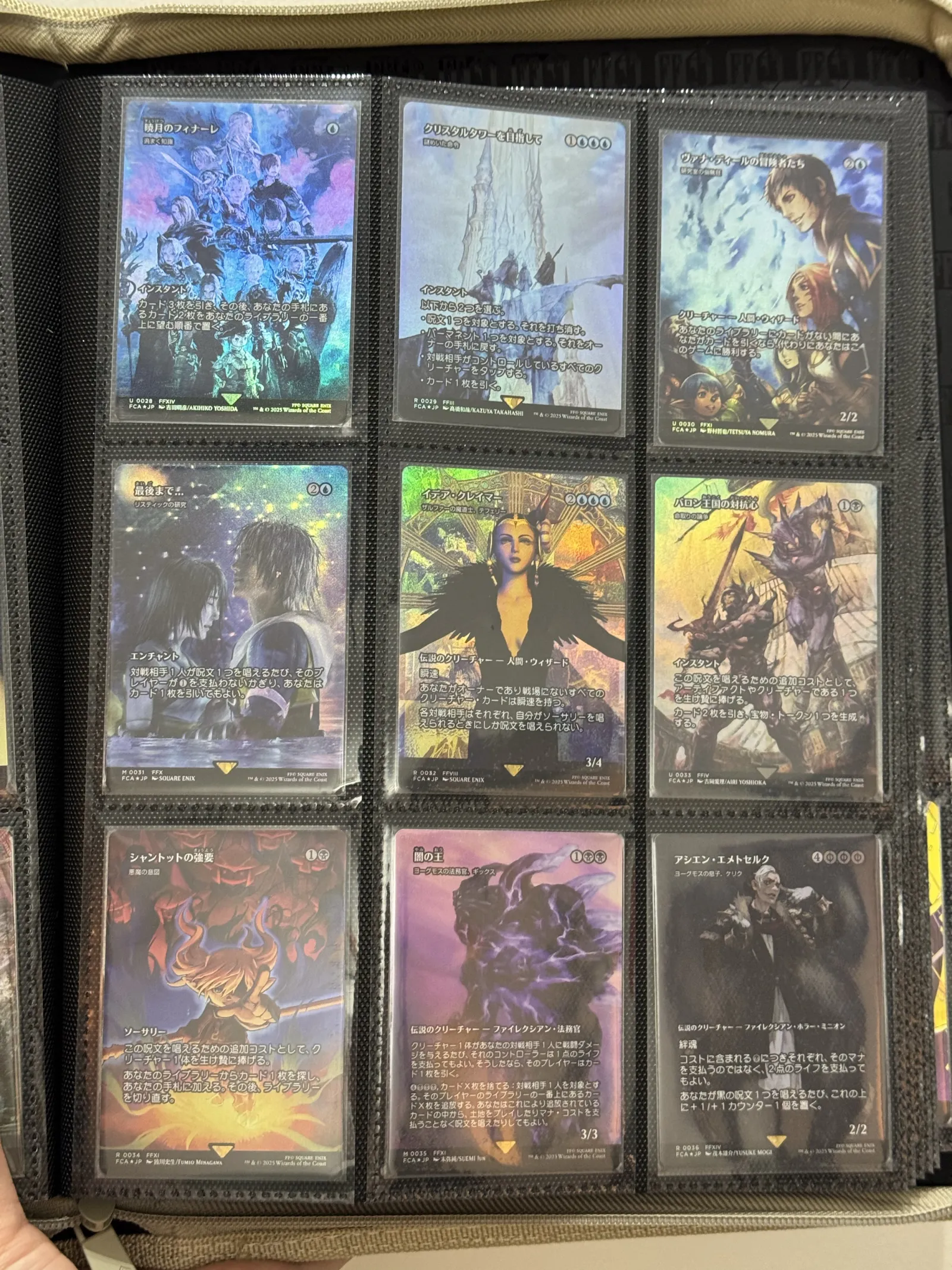 A full collection of MTG Final Fantasy 64 types Foil in Japanese (with only 2 in English:Gilgamesh & Sephiroth). Cards appear well-preserved with no visible damage, maintaining excellent overall presentation.