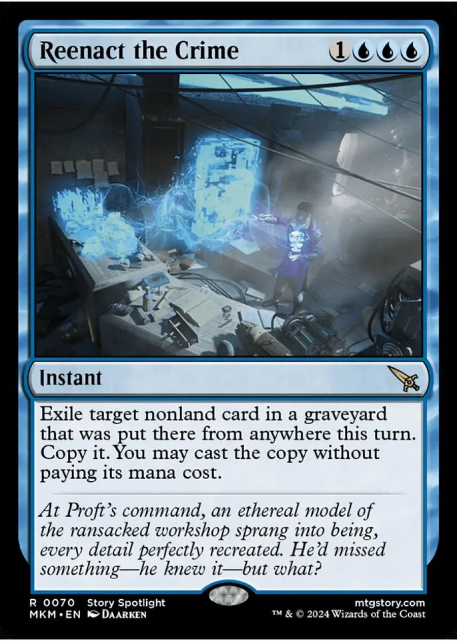 - Exile target nonland card in a graveyard that was put there from anywhere this turn. Copy it. You may cast the copy without paying its mana cost.