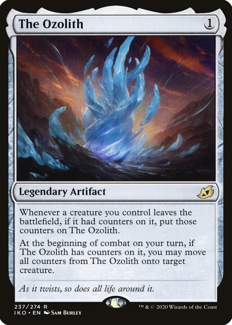 At the beginning of combat on your turn, if The Ozolith has counters on it, you may move all counters from The Ozolith onto target creature. - Flavor Text