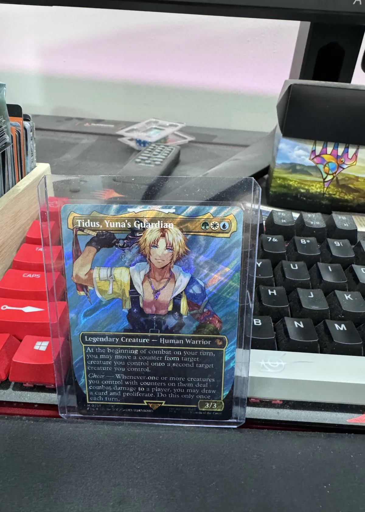 As a crossover promo, this card holds collectible value for fans of both Magic The Gathering and Final Fantasy. The depiction of Tidus, an iconic character from FF X, enhances its appeal. Being a promotional piece with unique mechanics and vibrant art, it is a desirable addition for collectors and players interested in thematic or niche decks.