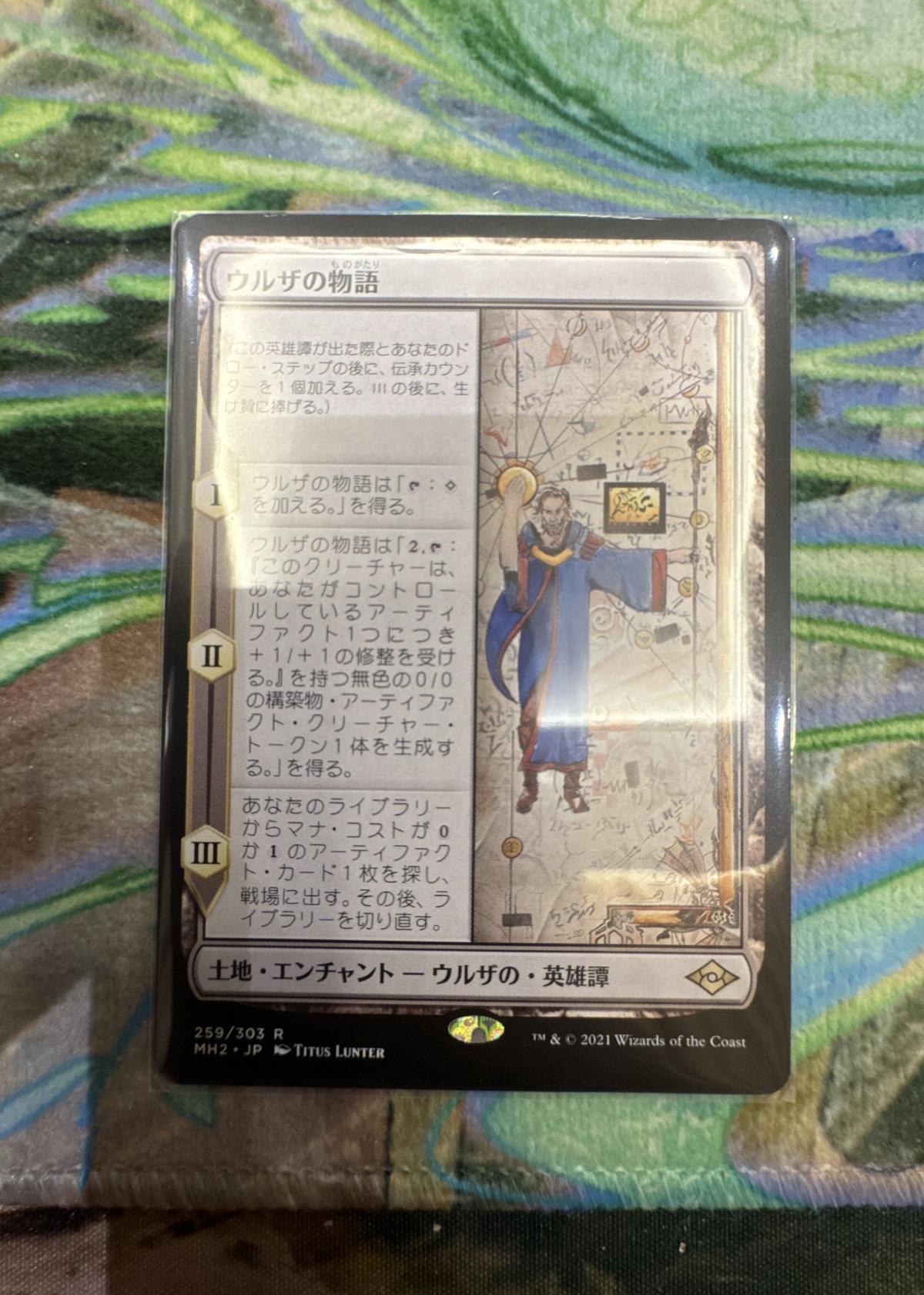 This is a Japanese language version of 'Urza's Saga' from Modern Horizons 2 (MH2), illustrated by Titus Lunter. The card number is 259/303, making it a rare land enchantment saga. 'Urza's Saga' is both highly collectible and a meta staple in many competitive formats like Modern. This card is not foil. Notably, the Japanese print can be more desirable for collectors.
