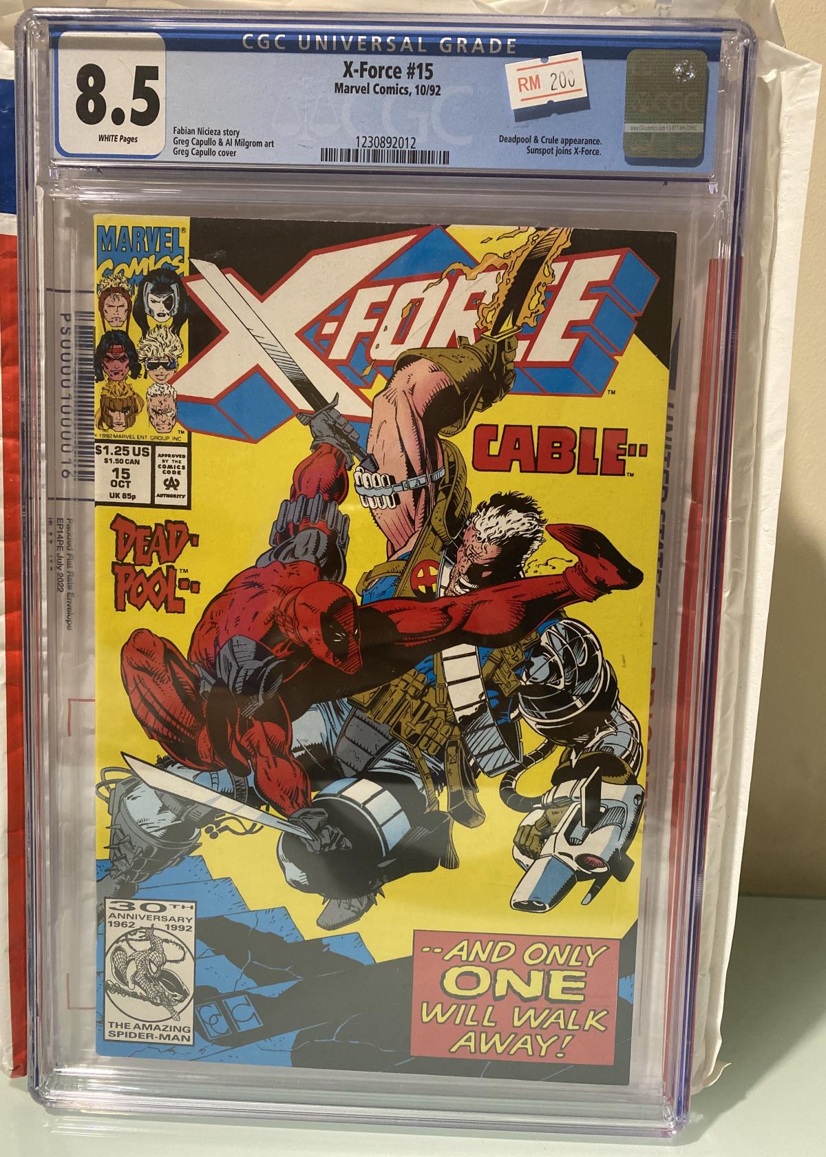 Special Sale : X-Force #15 CGC 8.5 VF+ Deadpool & Sunspot Key Issue Marvel 1992