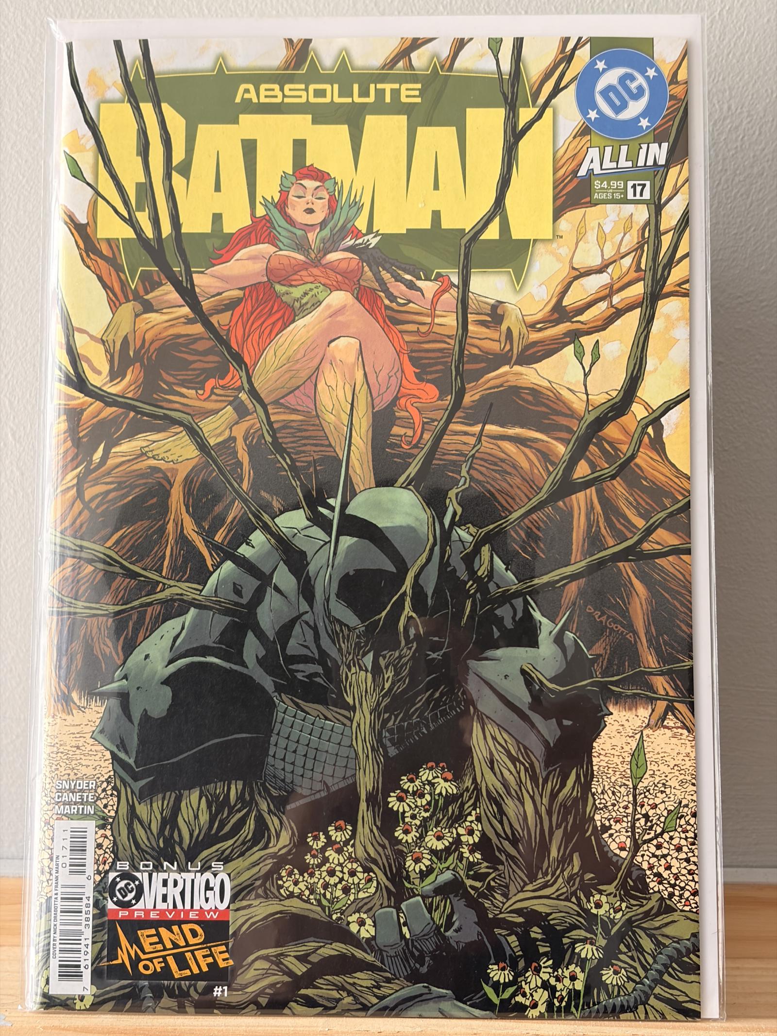 Absolute Batman issue #17 from DC Comics featuring Poison Ivy prominently on the cover. This modern comic showcases artwork by Snyder, Canete, and Martin. The comic is bagged and boarded.