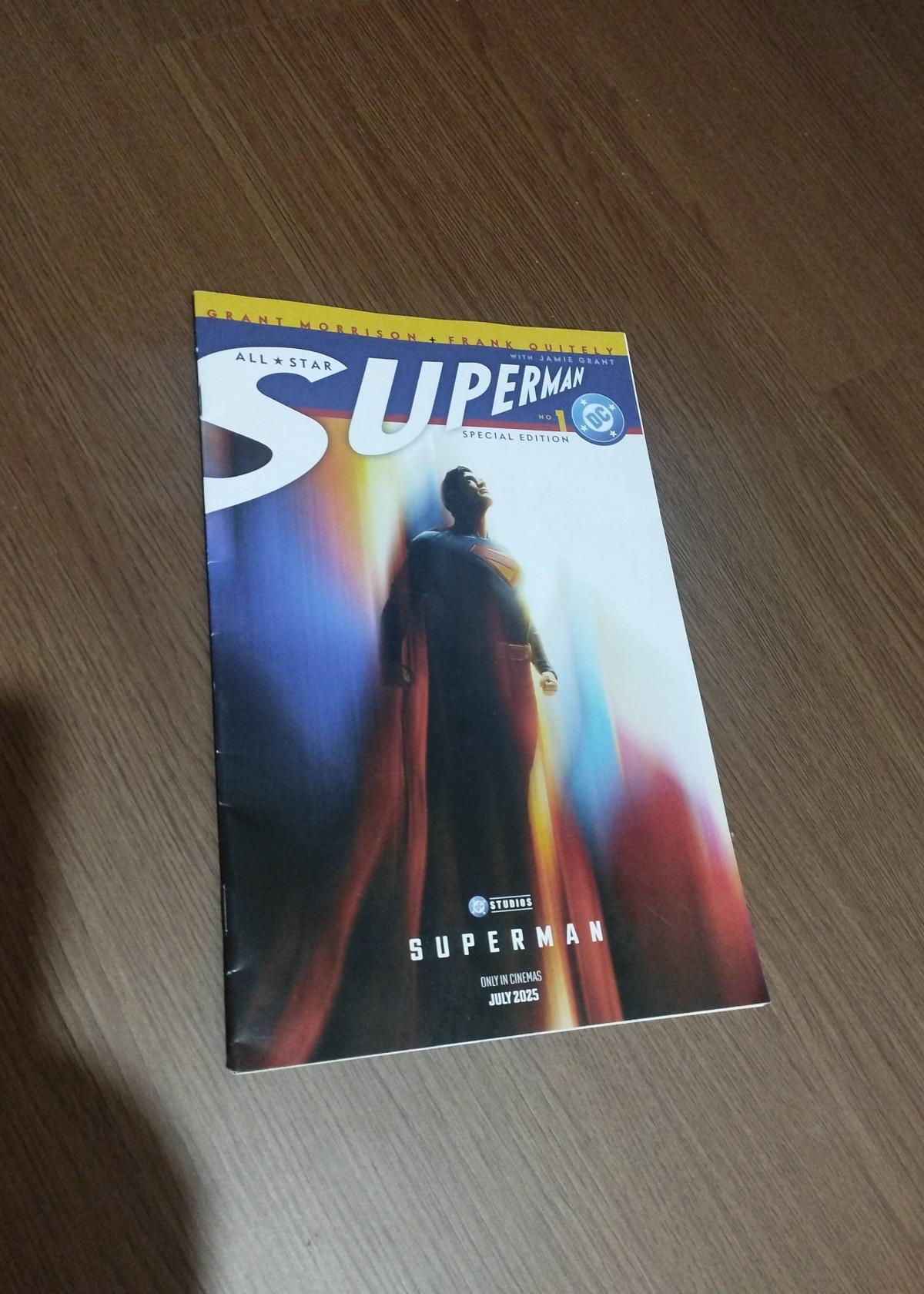 This is the All-Star Superman Special Edition #1, featuring a modern classic Superman story by Grant Morrison and Frank Quitely with Jamie Grant. The comic contains vibrant, full-color interior art and a cinematic cover promoting the upcoming Superman film. Suitable for collectors or fans of Superman and contemporary DC comics.
