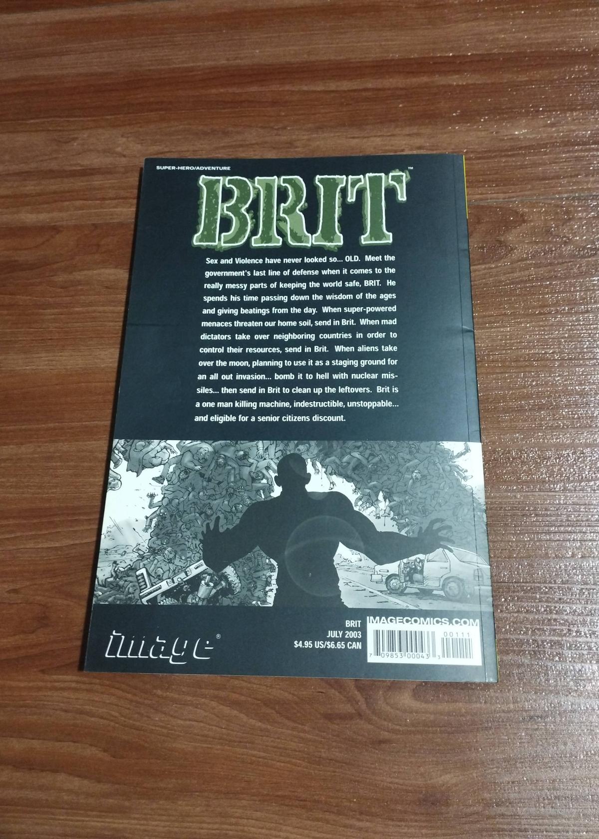 This is a modern comic titled 'Brit,' written by Robert Kirkman and illustrated by Tony Moore. The comic features a gritty, action-packed story, with black-and-white artwork. The interior pages and cover show no visible tears, creases, or major wear, making this a great addition for collectors of Kirkman's works or modern indie comics.