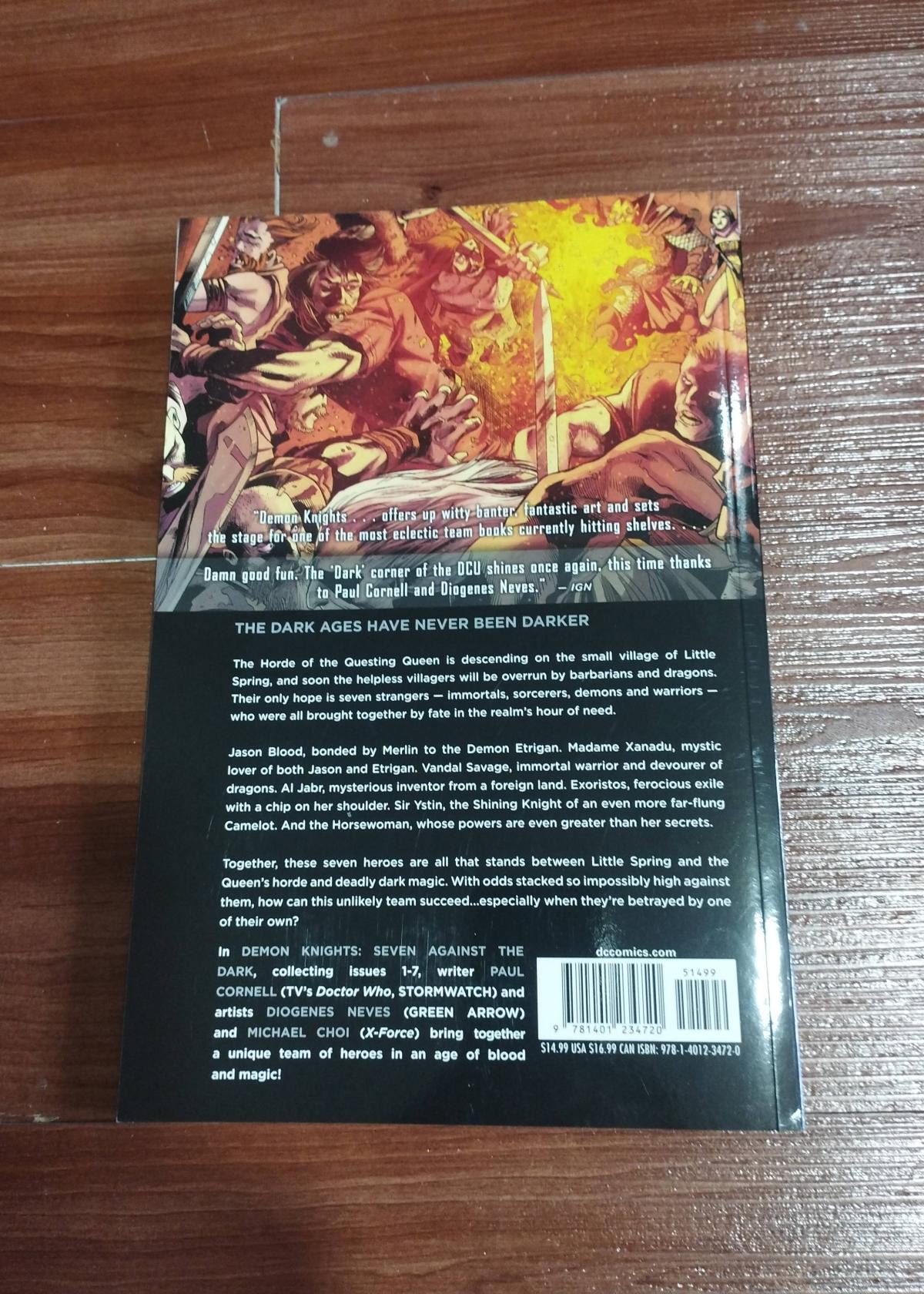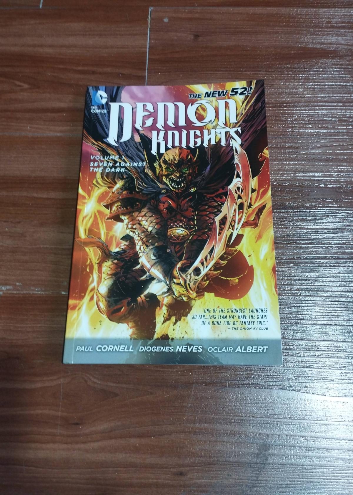 This is the first volume of 'Demon Knights' from DC Comics' The New 52 line, featuring a fantasy epic where medieval heroes battle dark forces. Written by Paul Cornell with dynamic artwork by Diogenes Neves and Oclair Albert, the story blends rich fantasy elements with action-packed scenes.