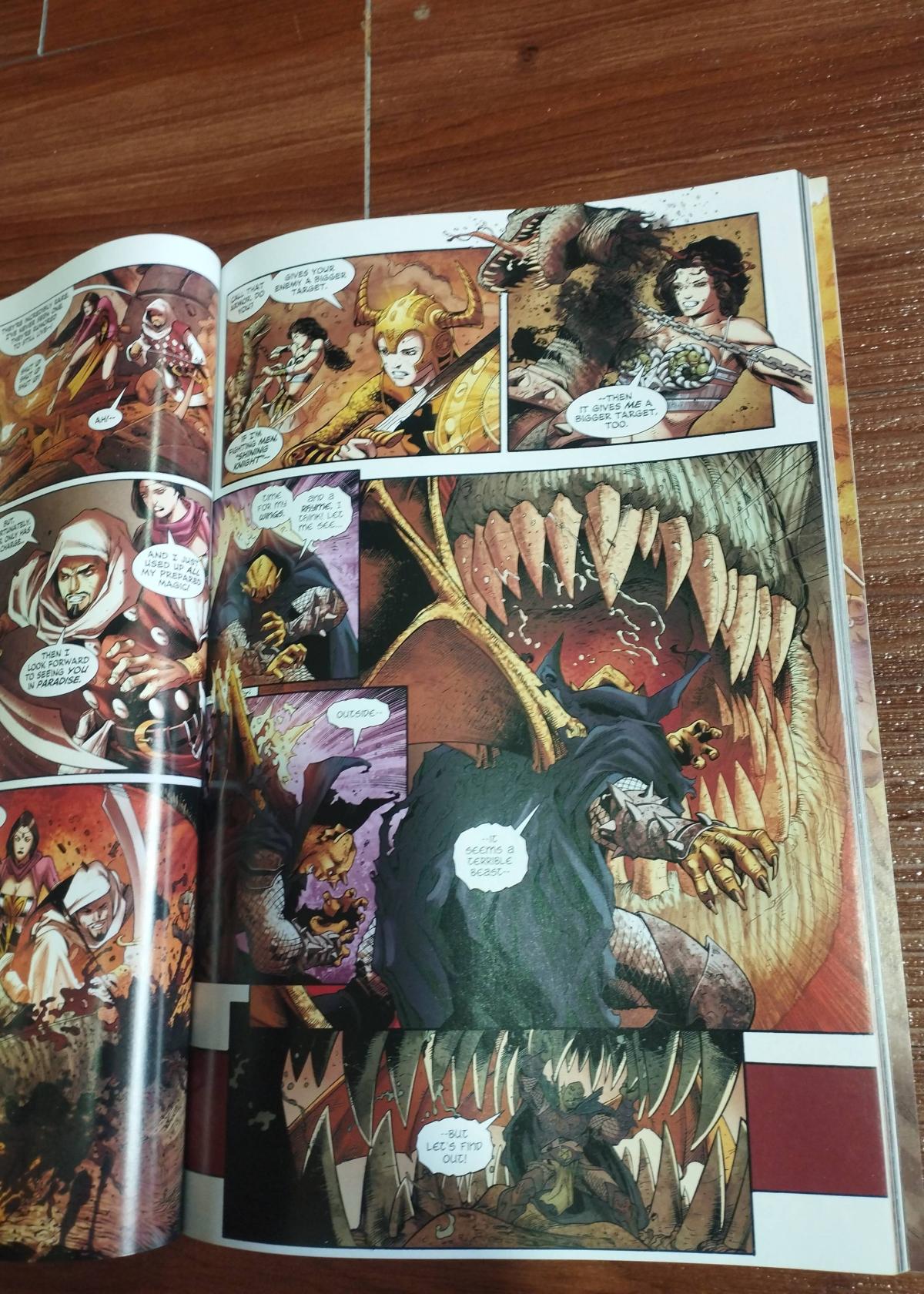 The comic is in near mint condition with a visually striking cover showing minimal wear. Inside, the pages are colorful and bold, showcasing detailed art and engaging dialogue. A great collectible for fans of modern DC Comics and fantasy-themed graphic novels, this volume is notable for its unique setting within the DC universe and its compelling team of characters.