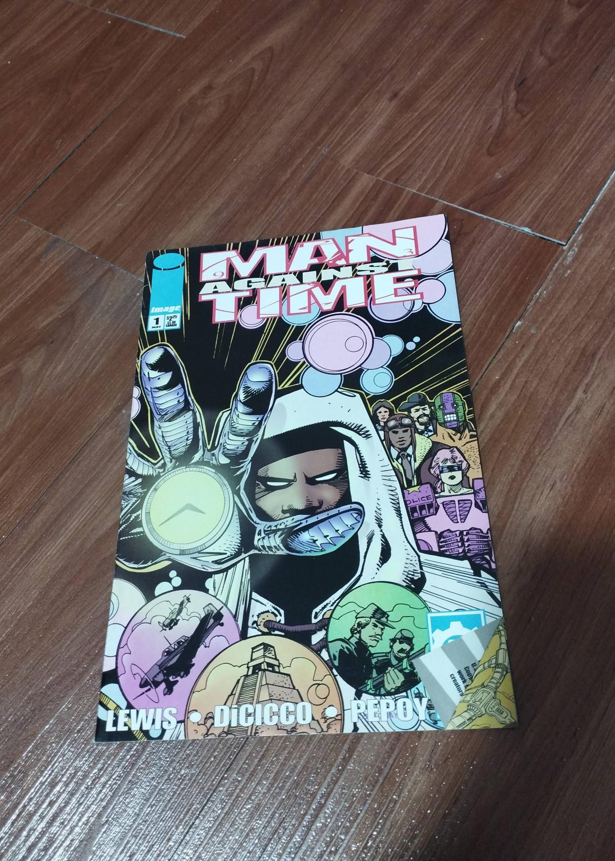This is Man Against Time Issue #1, published by Image Comics and crafted by creators Lewis, DiCicco, and Pepoy. Featuring a vibrant and dynamic time-bending superhero storyline, this modern comic showcases eye-catching artwork and an intriguing narrative.
