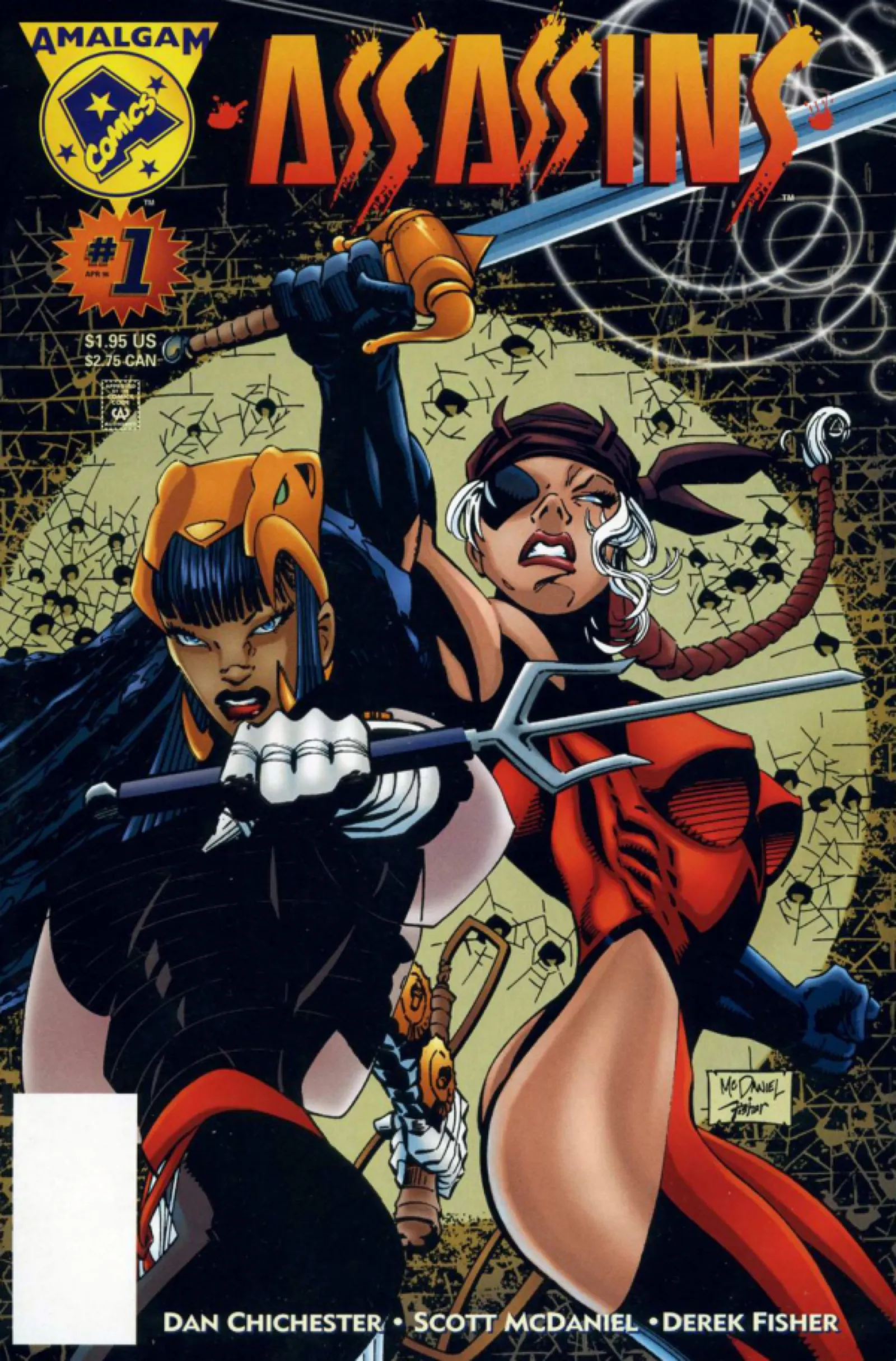 ASSASSINS #1: In this issue, Daredevil and Deathstroke are merged to create Dare. Meanwhile, Catwoman and Elektra are merged to create Catsai. Together, these two femme fatales are the deadliest assassins in the world, and they're here in Gotham City to murder the mayor, an amalgam of the Kingpin and the Riddler.
