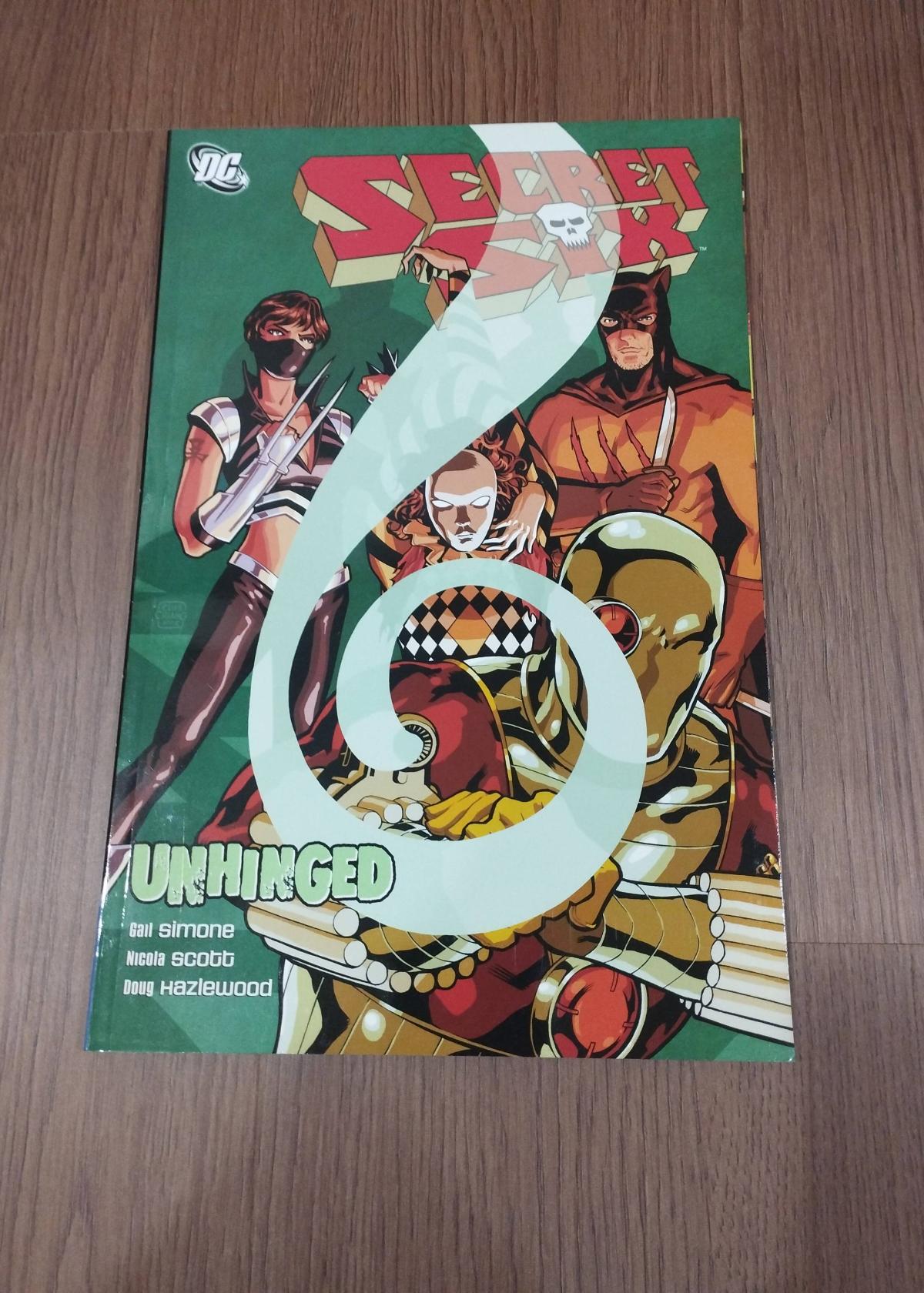 This is a very good condition, ungraded modern comic titled 'Secret Six: Unhinged,' published by DC Comics. Featuring a powerful storyline by acclaimed writer Gail Simone and stunning artwork from Nicola Scott and Doug Hazlewood, this graphic novel collects a major arc of the Secret Six series. The plot revolves around a team of anti-heroes facing gritty missions and complex personal conflicts, combining intense narrative with vivid, dynamic art.