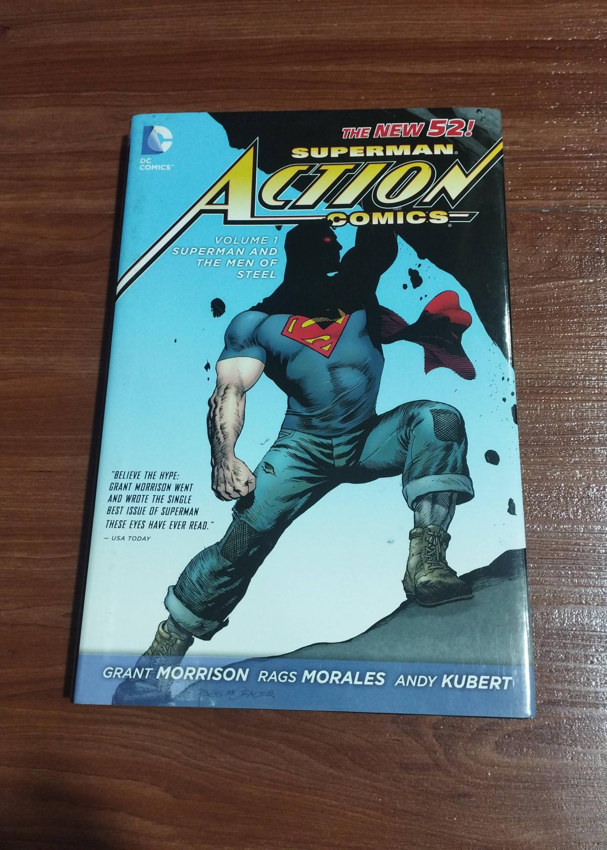 This hardcover edition of 'Superman Action Comics Volume 1: Superman and the Men of Steel' is from the acclaimed DC Comics New 52 relaunch. Written by Grant Morrison with stellar artwork by Rags Morales and Andy Kubert, it offers a fresh and modern retelling of Superman's origins.