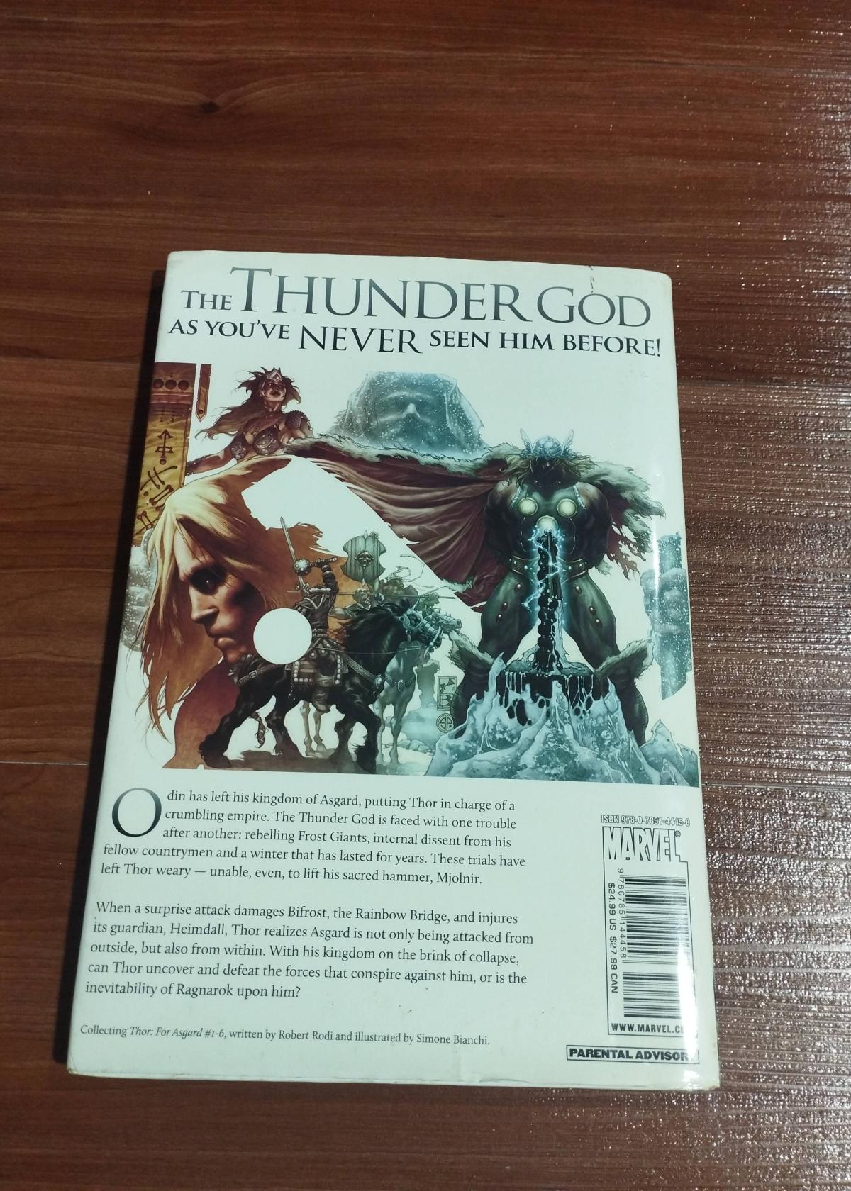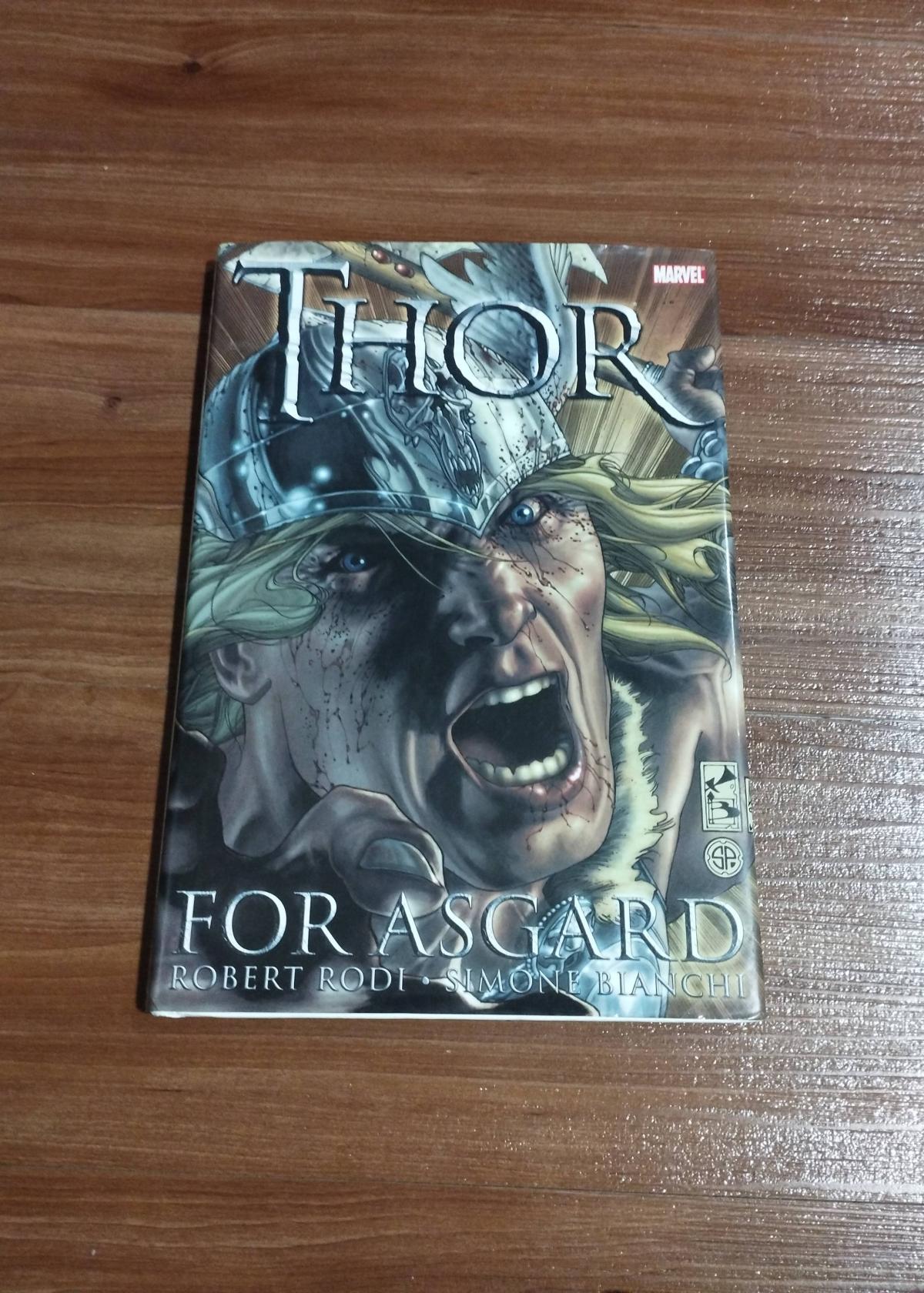 This Marvel hardcover graphic novel, 'Thor: For Asgard,' features a gripping story penned by Robert Rodi with stunning artwork by Simone Bianchi. In this edition, Thor faces epic battles to protect Asgard, brought to life with detailed and dynamic modern comic art.