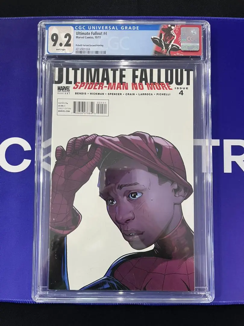 🔑 ULTIMATE FALLOUT VOL 1 #4 CGC 9.2 "FIRST APP. OF SPIDERMAN MILES MORALES 2ND PRINT🔑 (W) BRIAN MICHAEL BENDIS; JONATHAN HICKMAN; NICK SPENCER (A) SARA PICHELLI; SALVADOR LARROCA; CLAYTON CRAIN (CA) SARA PICHELLI