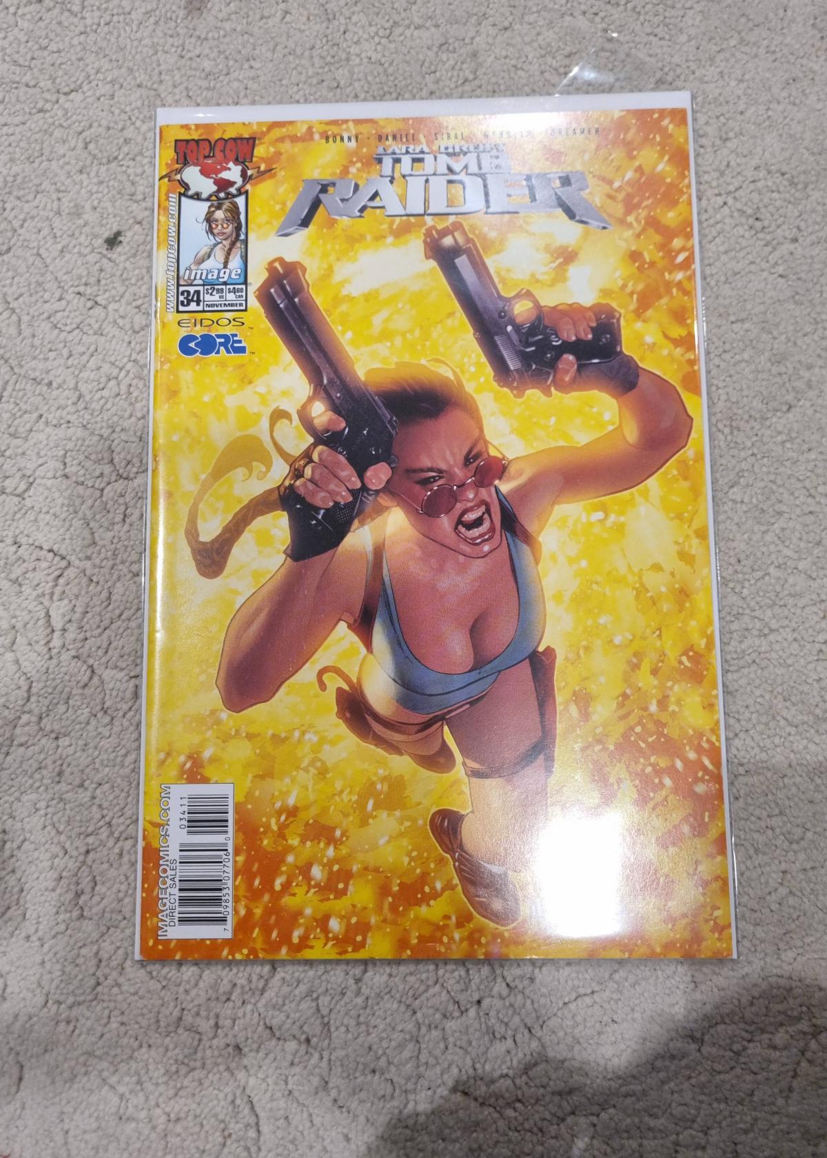 This is issue #34 of the Lara Croft: Tomb Raider comic from Top Cow/Image Comics, published in November. The cover art features the iconic Lara Croft in action. Adam hughes cover
