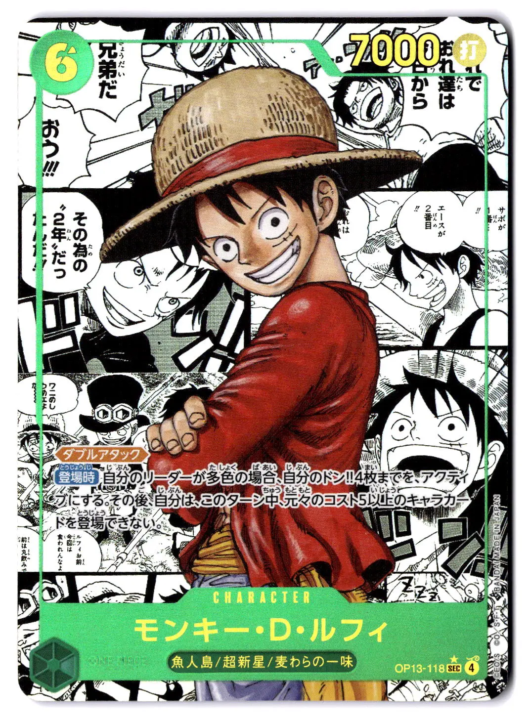(101882)(JP) NM - One Piece Monkey D.Luffy Manga OP13-118 SEC* Japanese Card Game (Foil)