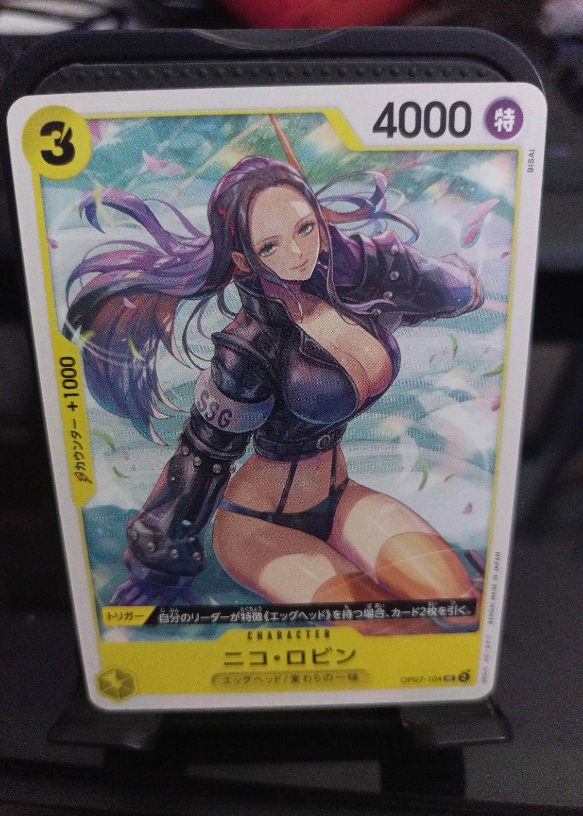 This is a Nico Robin character card from the One Piece Card Game, set OP07 (Egghead Arc). The card features vivid artwork of Nico Robin in a dynamic pose and includes her stats and abilities for gameplay. Ideal for collectors and players aiming to upgrade their decks with unique character cards.