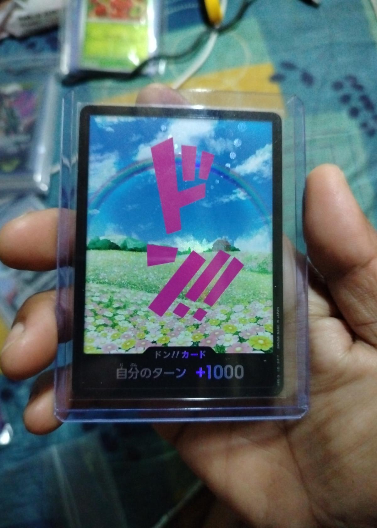 The card is in near mint condition and carefully stored in a protective plastic sleeve. It is ungraded but shows minimal to no signs of wear, maintaining its visual appeal and collectibility. While primarily intended as a collectible item—particularly given its Japanese text and unique artwork—it serves as a fantastic representative piece for fans of the One Piece series. Special Don!! cards like this are particularly sought-after by collectors due to their distinctive look and relevance within the One Piece Card Game.