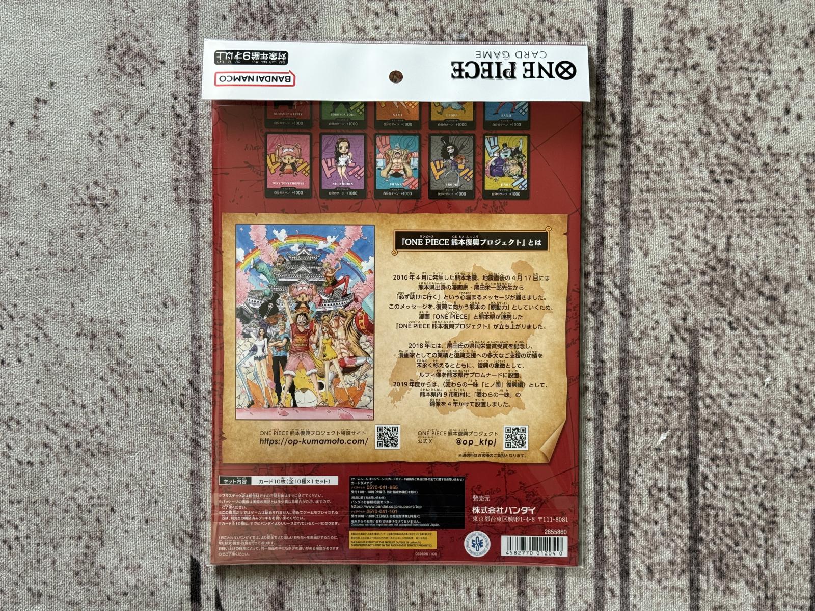 This is a One Piece Card Game Premium Card Collection from the Kumamoto Project by Bandai, featuring characters from the One Piece anime. Released as part of a regional promotion in Kumamoto, Japan, this set has unique thematic art and is primarily a collectible item rather than a playable card in the Pokemon TCG meta. The packaging includes multiple cards but no specific card number, set code, or artist details are provided. The item is not foil or graded.