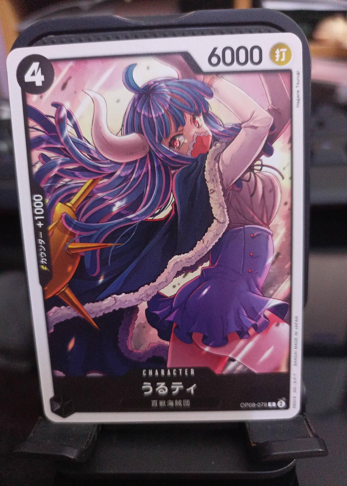 This is an official Bandai trading card for the One Piece Card Game, featuring the character Ulti (うるティ) from the Animal Kingdom Pirates. The card is from set OP08 (card number 078), displays a stunning illustration and has a power value of 6000. Ideal for collectors and One Piece TCG players.