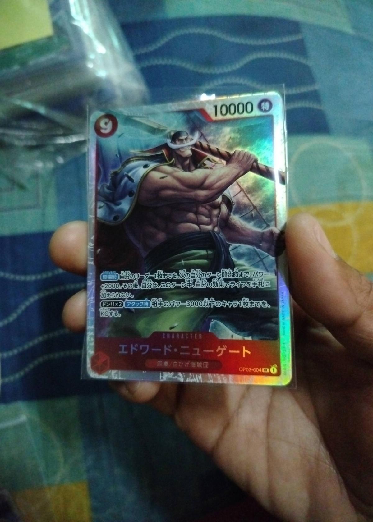 One Piece Japanese Edward Newgate OP02-004 SR Holo Card (Near Mint, Sleeved)