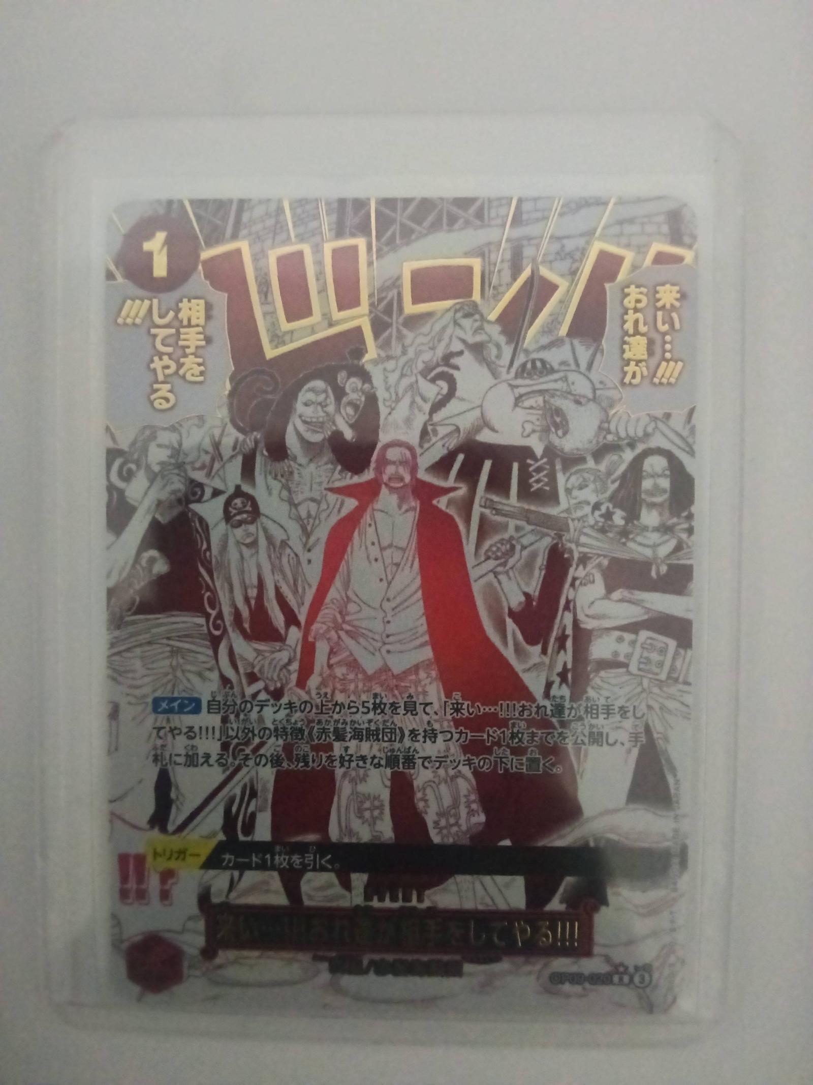 Trading card from One Piece TCG featuring the Red-Haired Pirates crew with Japanese text. Card displays key abilities and artwork illustrating the iconic characters from the series. Perfect for collectors and players of One Piece Trading Card Game.