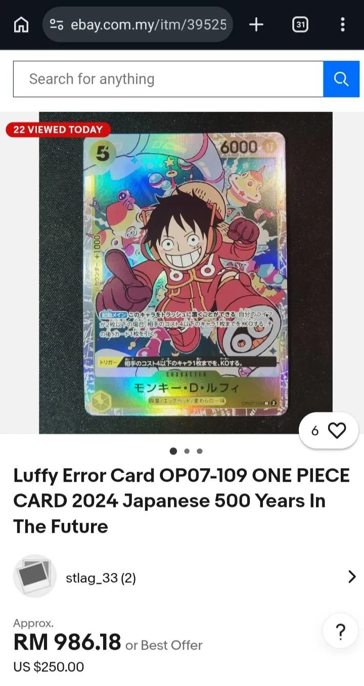 Luffy Error Card OP07-109 SR One Piece 2024 Japanese 500 years in the future