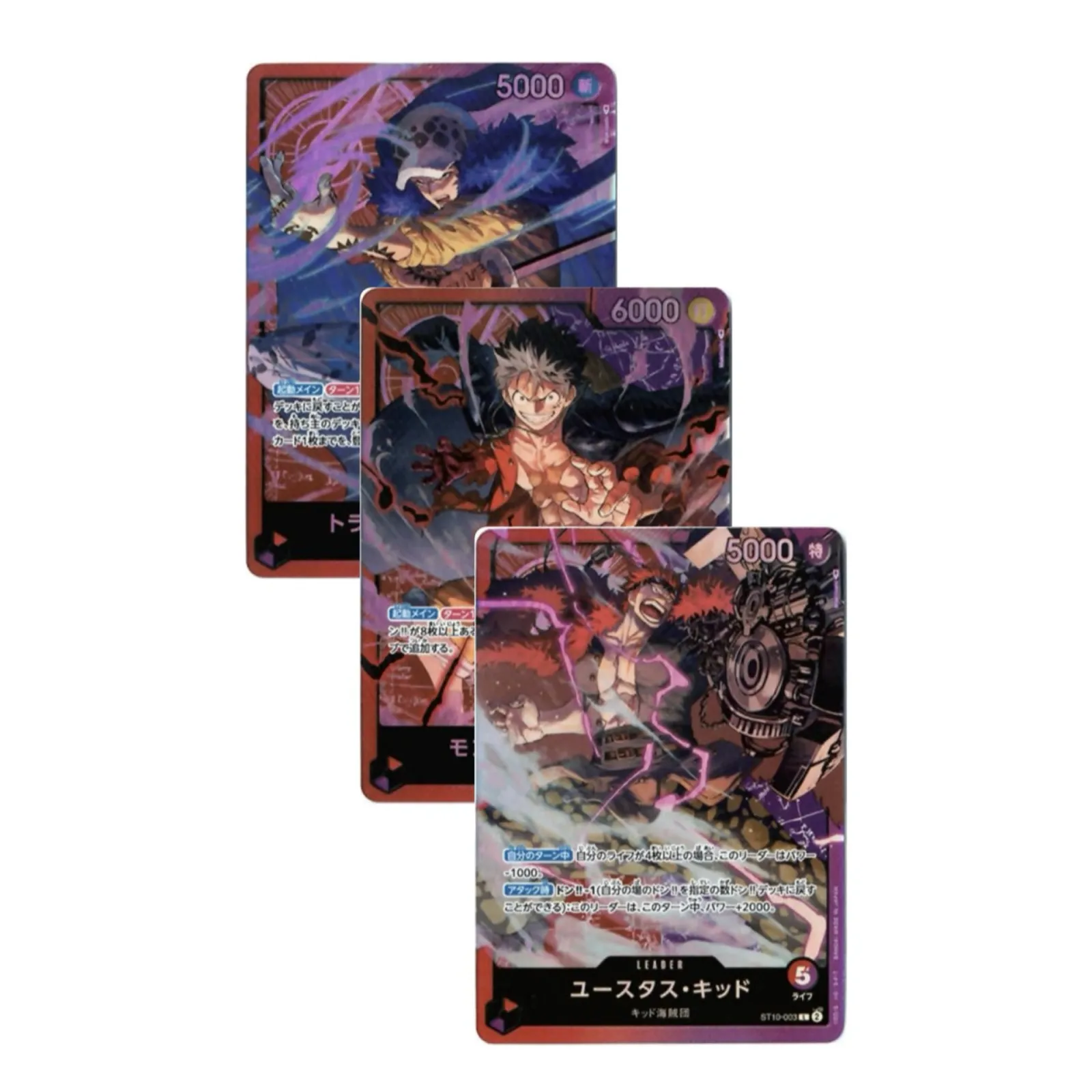 🔹ST10-The Three Captains 🔹Price is for the 3 Leaders : Law,Luffy,Kid 🔹Japanese Version 🔸Near Mint 📍COD: Wangsa Maju