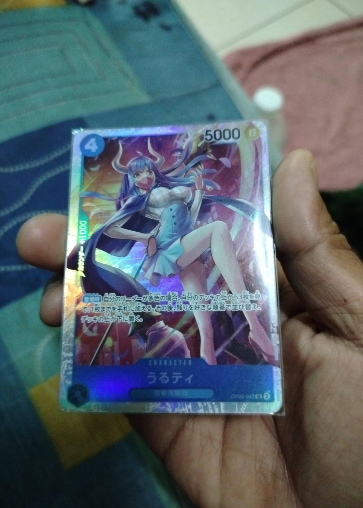 This listing features the Ulti OP05-043 SR card from the Japanese One Piece Trading Card Game. This card is graded as near mint and remains ungraded, ideal for both collectors and players looking for a pristine addition to their deck or display. The card comes as a Super Rare (SR) holographic foil, notable for its eye-catching finish and premium visual appeal.