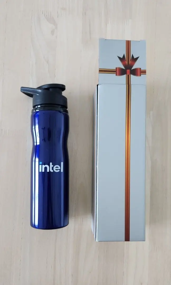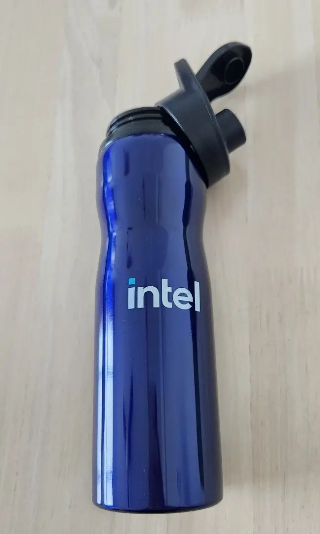 NEW Intel Logo Stainless Steel Metal Water Bottle Tumbler Blue Collectible Souvenir Unused Authentic Original
